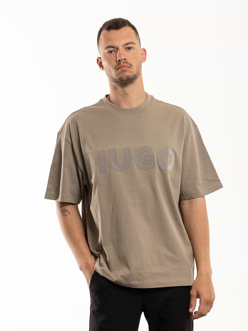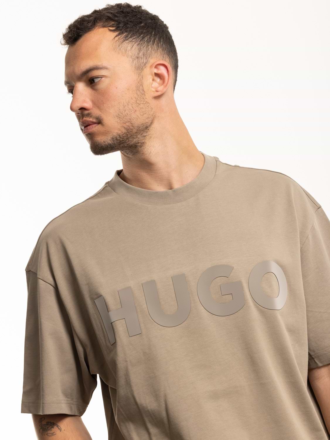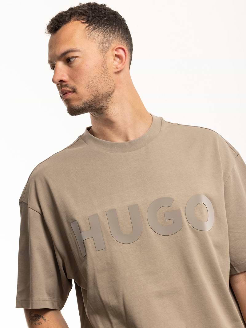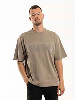 HUGO beige big logo חולצה בצבע בז אוברסייז עם הדפס הוגו בחזית