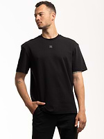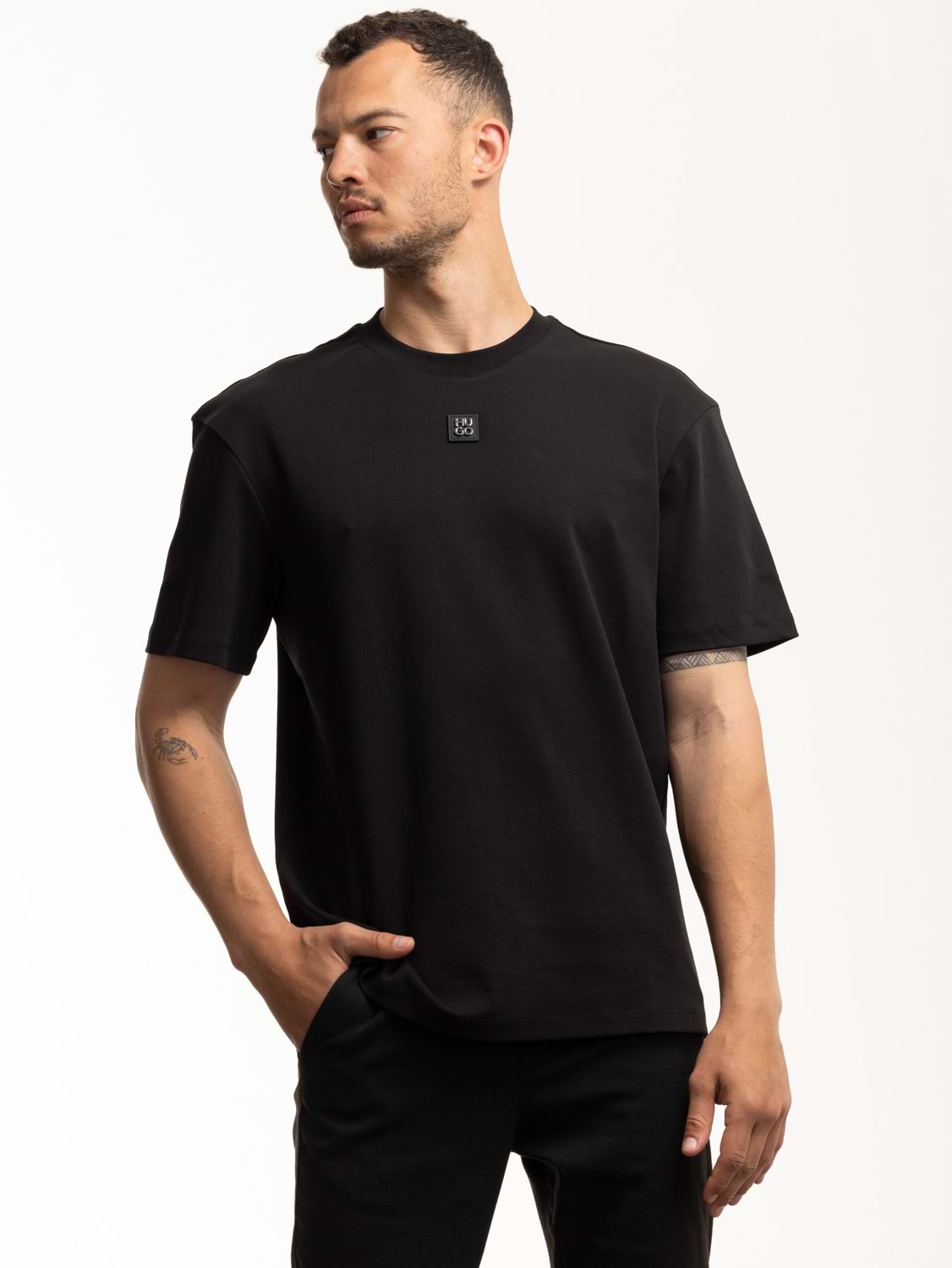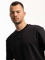 HUGO black plata small logo חולצה בצבע שחור בד מרצרייז עם פלטה במרכז המוצר