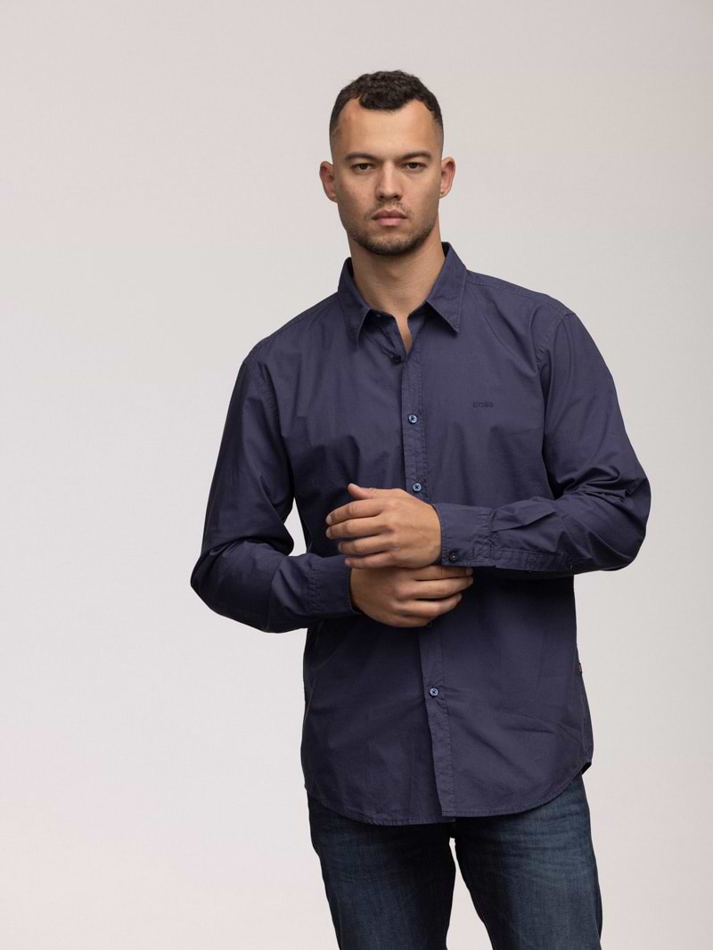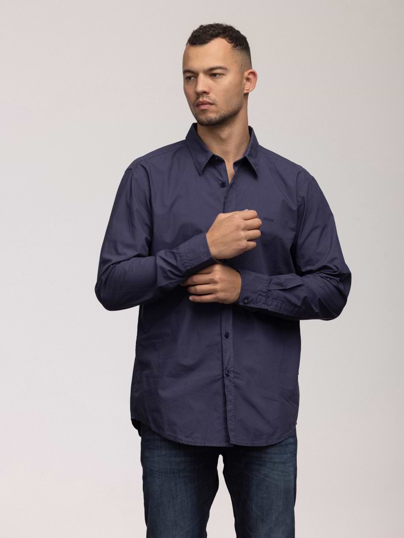 HUGO BOSS blue regular fit Buttoned shirt חולצה מכופתרת בצבע כחול עם לוגו המותג
