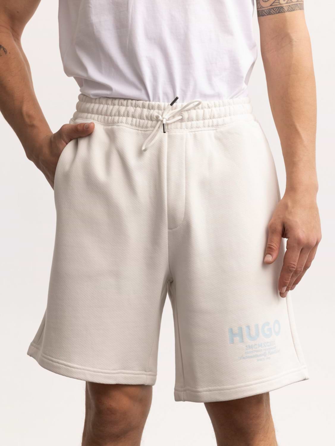 HUGO cream light blue hugo מכנס קצר הוגו לוגו תכלת