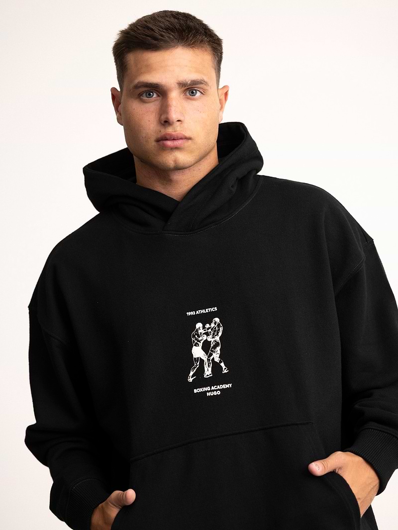 HUGO hoodie black center back logo קפוצון בצבע שחור boxing academy