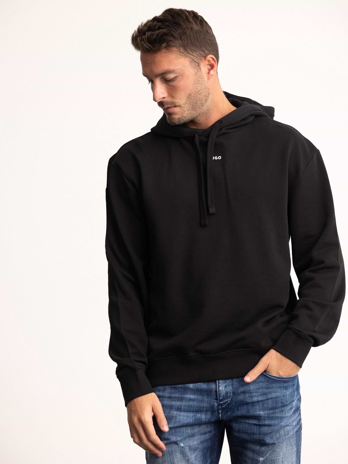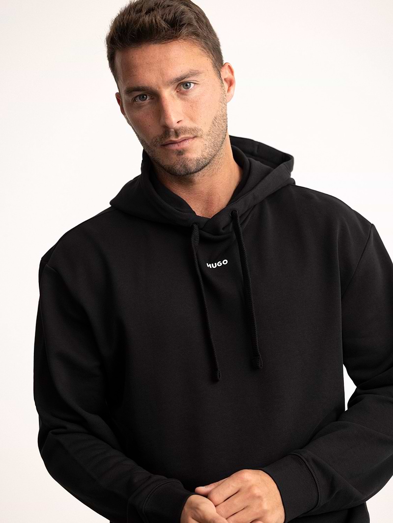 HUGO hoodie black center logo קפוצון בצבע שחור עם לוגו הוגו במרכז