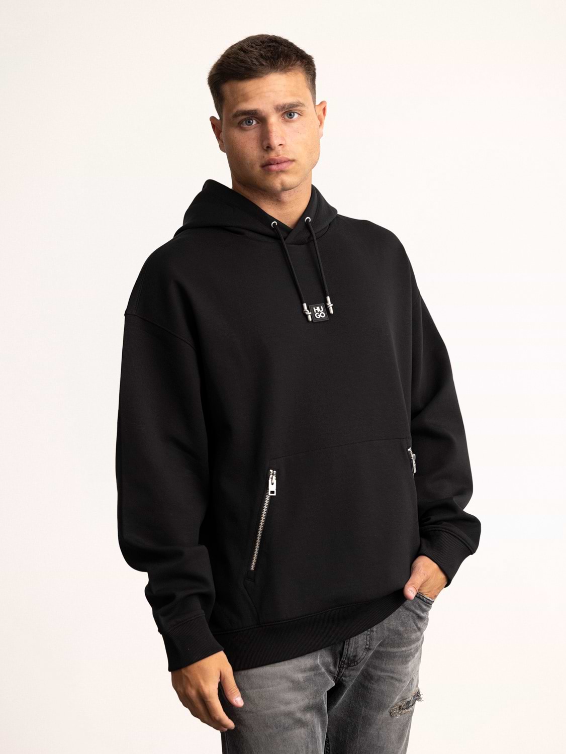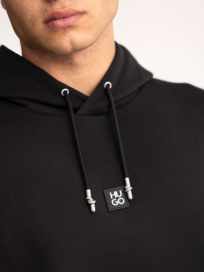 HUGO hoodie mercerised black center logo קפוצון מרצרייז בצבע שחור עם לוגו מטאל במרכז
