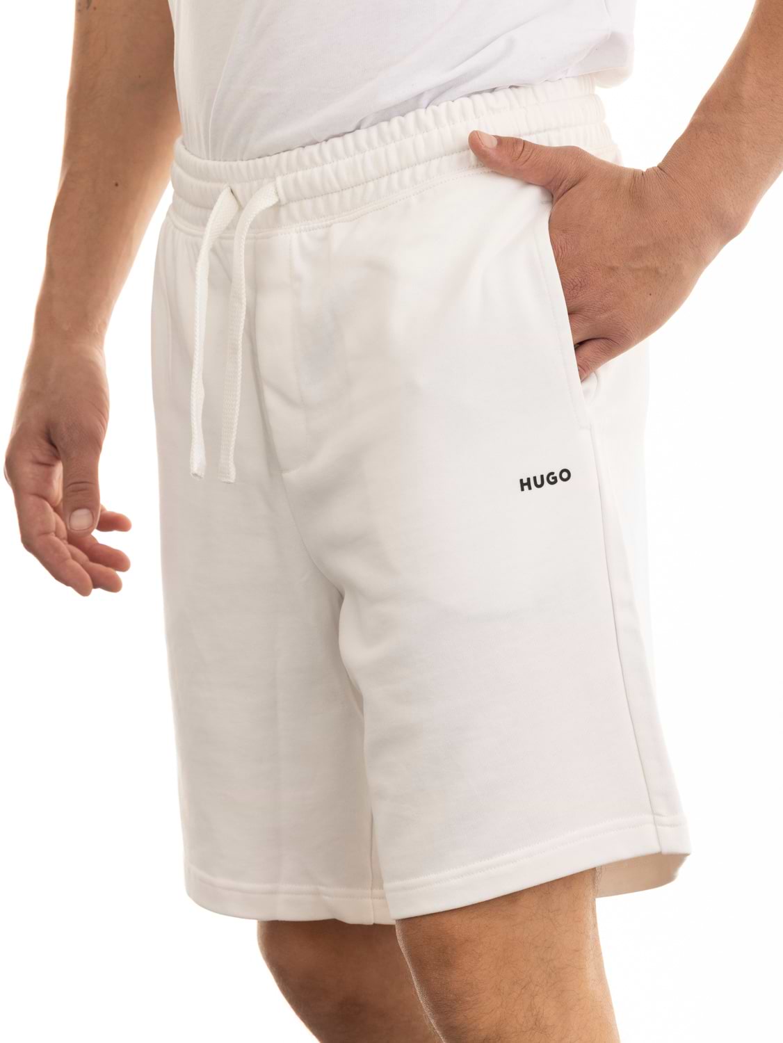 HUGO short pants white מכנס קצר בצבע לבן עם לוגו שחור הוגו