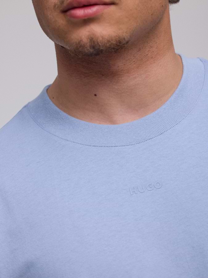 HUGO small center logo טי שירט בייסיק הוגו עם לוגו טון על טון במרכז המוצר צבע תכלת