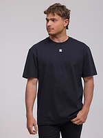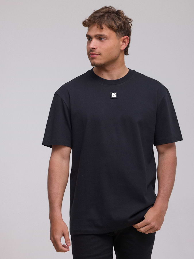 HUGO small center logo plata  טי שירט עם פלטה במרכז בצבע שחור