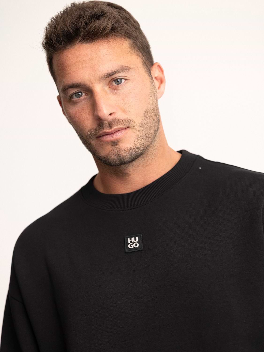 HUGO sweatshirt mercerised black center logo סווטשירט מרצרייז בצבע שחור עם לוגו מטאל במרכז