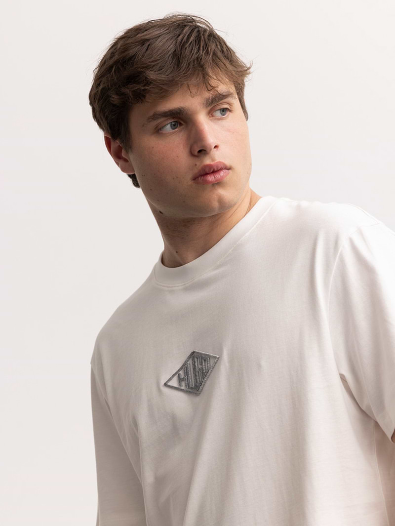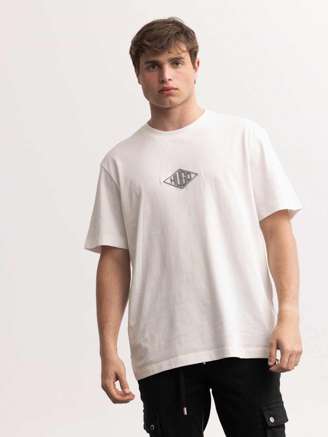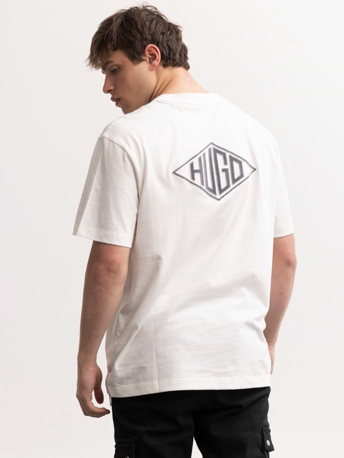 HUGO white t shirt print חולצה בצבע לבן עם פרווה בחזית המוצר ובגב