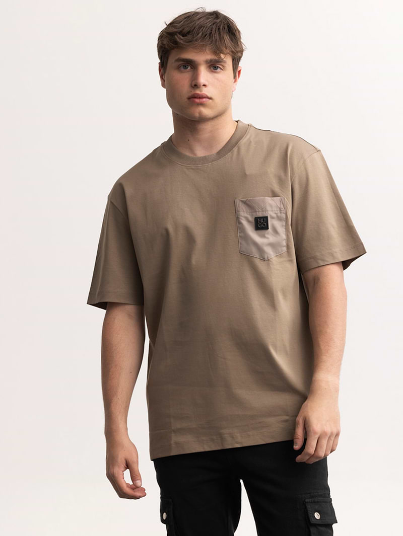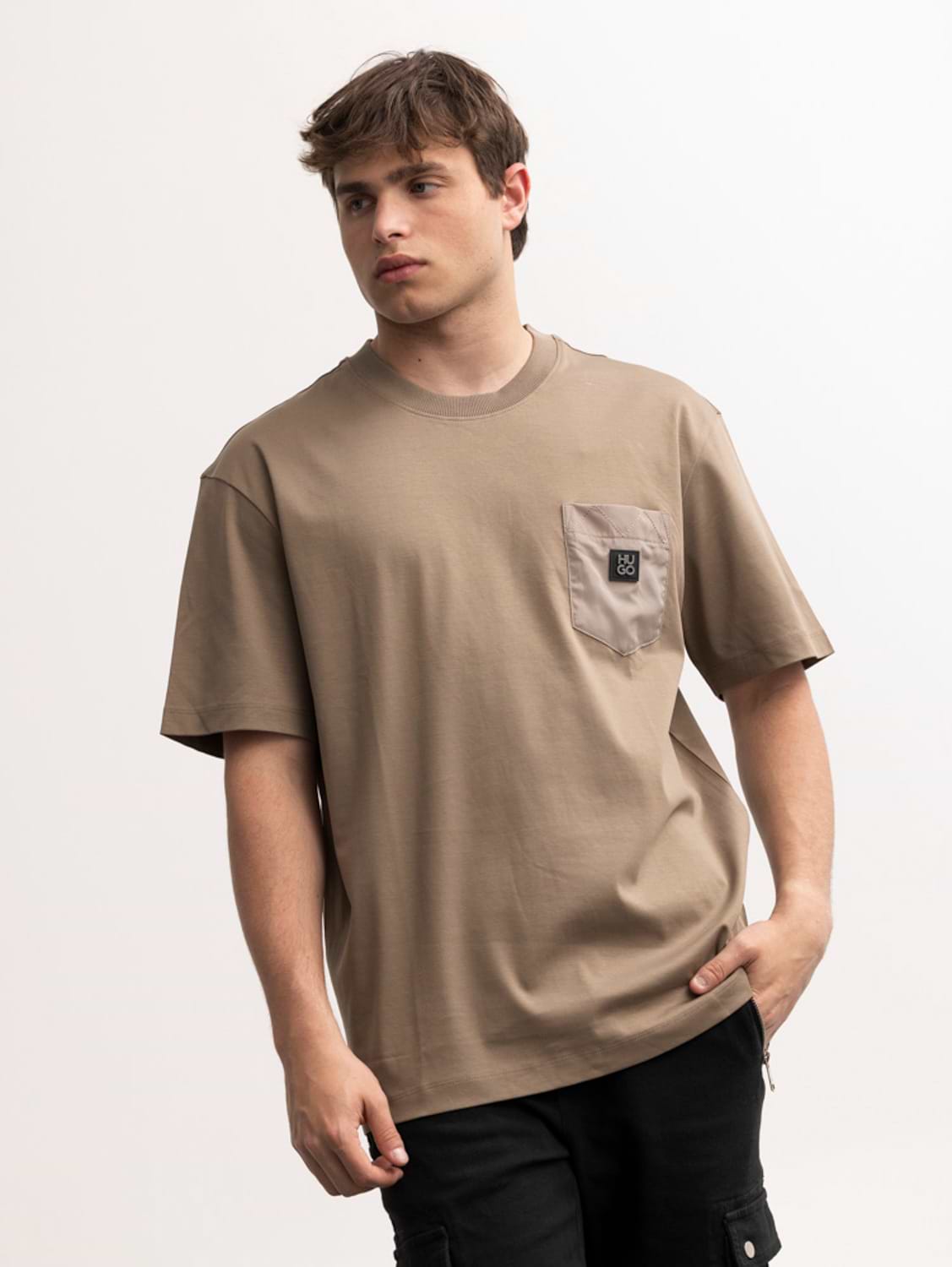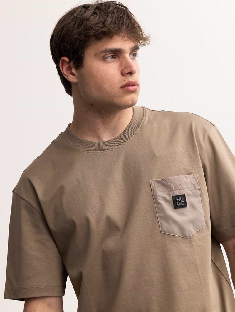 HUGOt shirt beige plata חולצה מרצרייז עם פלטה הצבע בז'