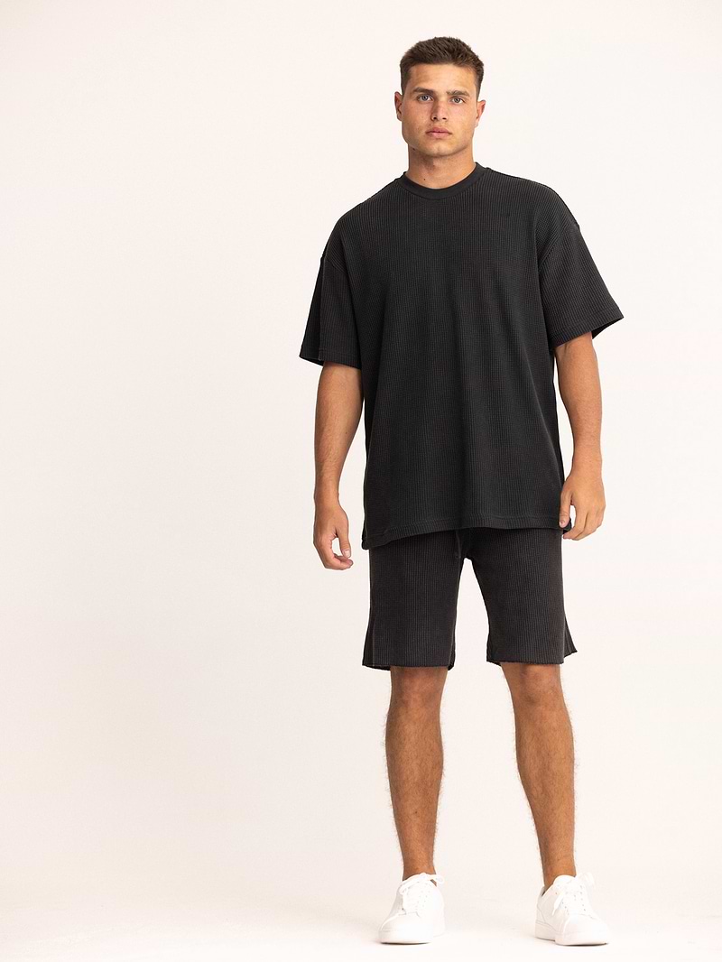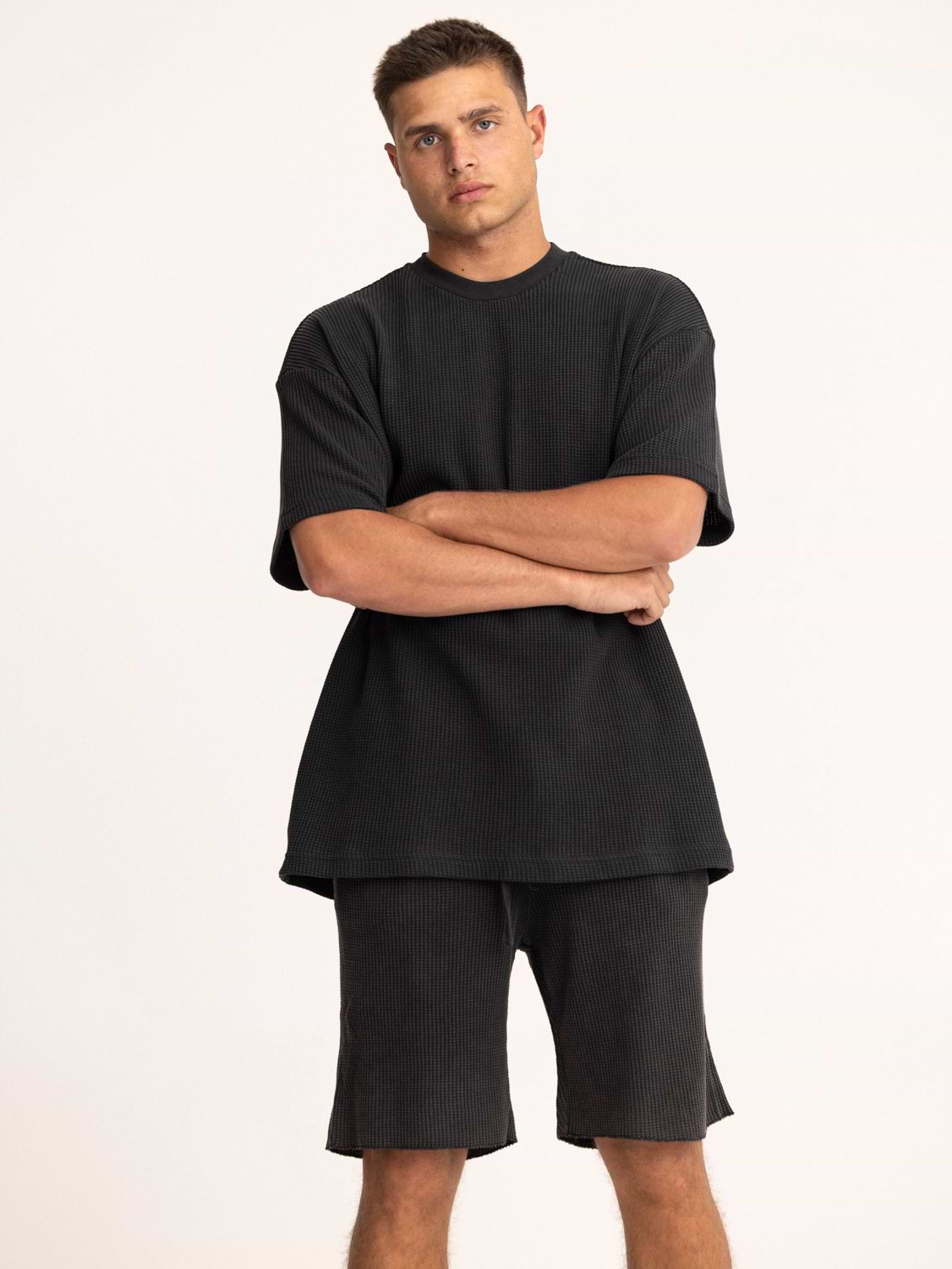 PALM MYKONOS balck waffle oversize t shirt חולצה אוברסייז בד וופל בצבע שחור (חלק מסט)