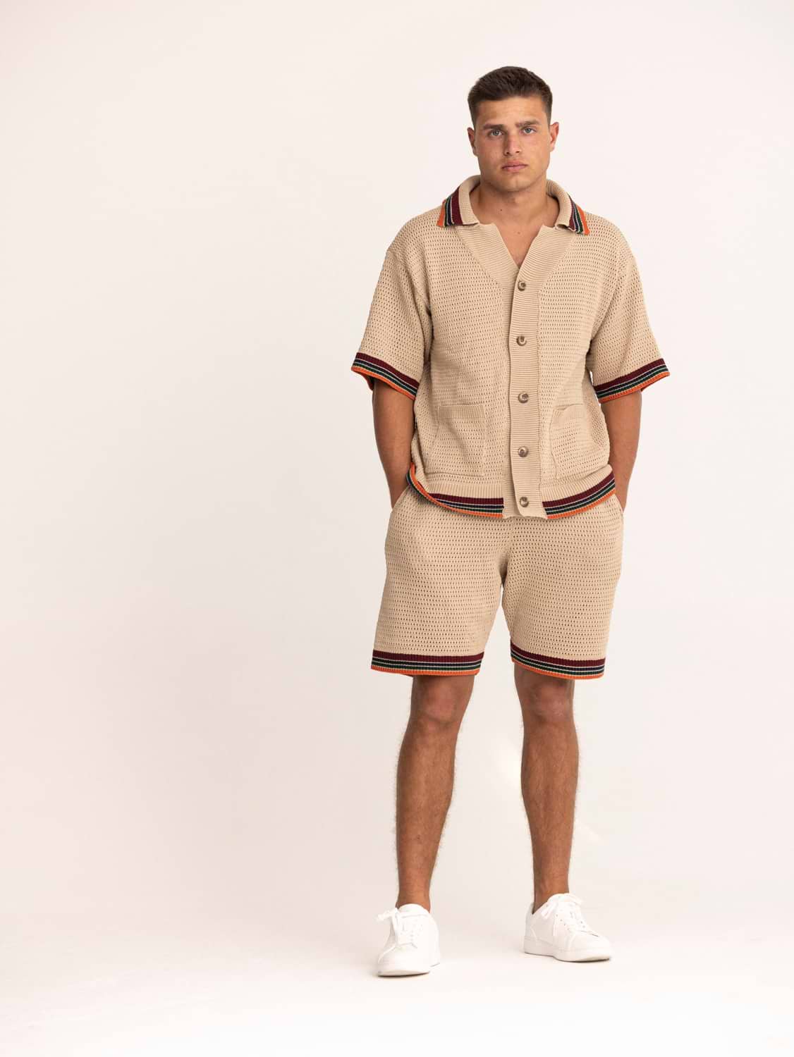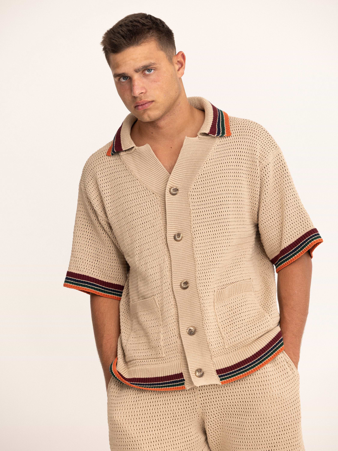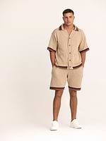 PALM MYKONOS beige oversize t shirt חולצה מכופתרת אוברסייז בצבע בז’ סריג (חלק מסט)