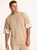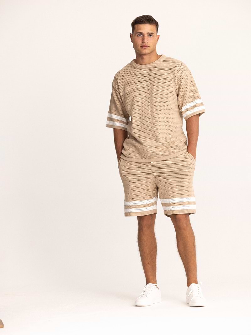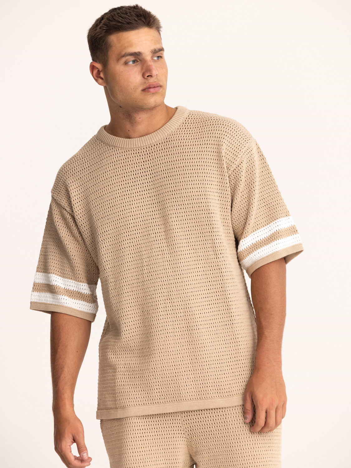 PALM MYKONOS biege stripe oversize t shirt חולצה אוברסייז בצבע בז סריג פסים בצבע (חלק מסט)