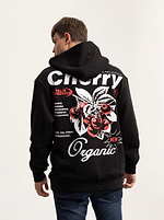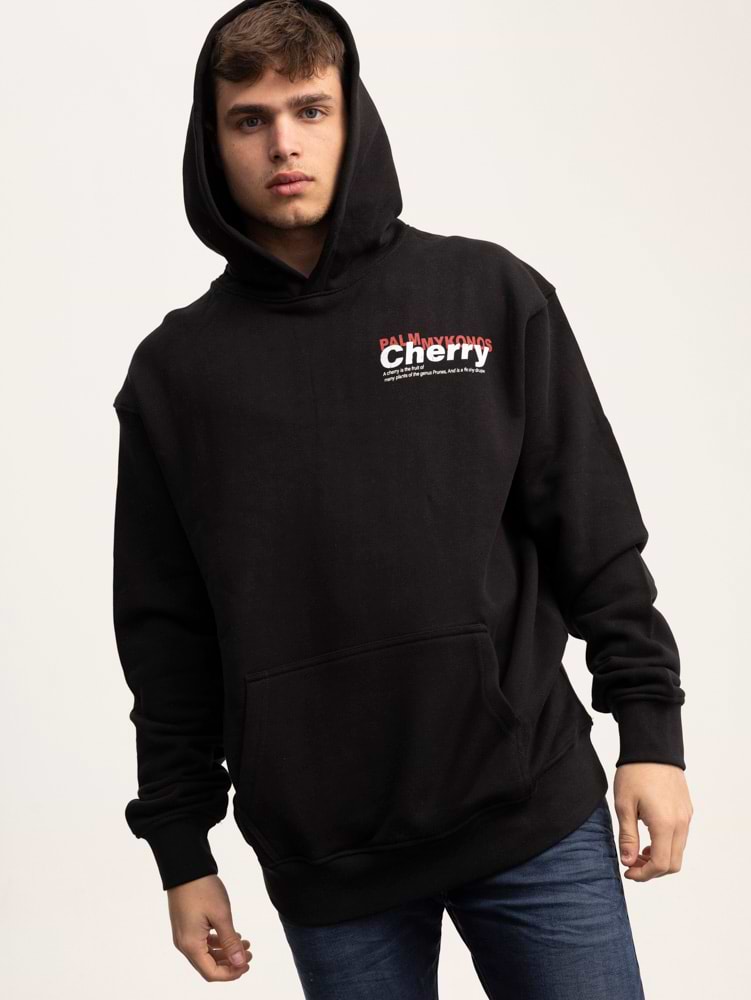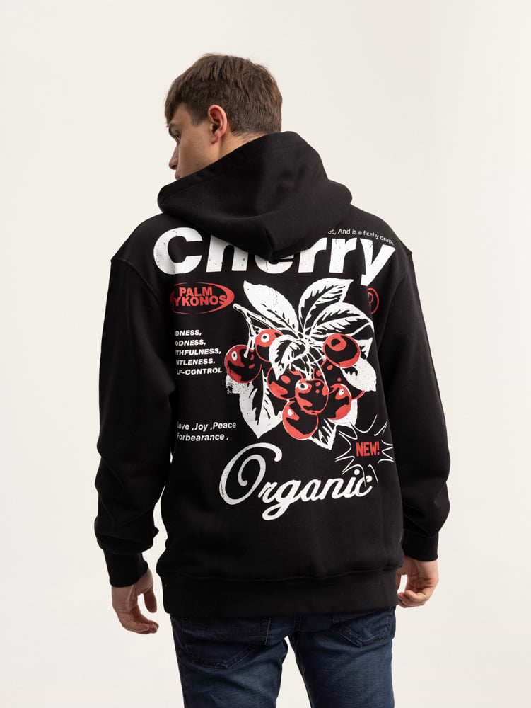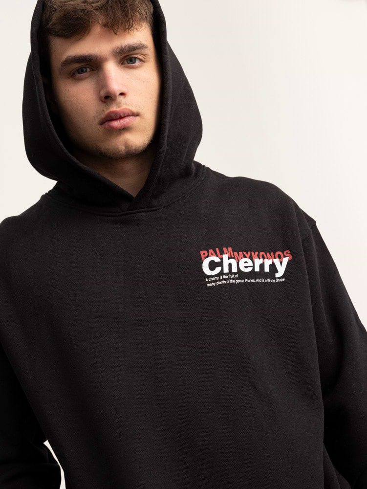 PALM MYKONOS black oversize hoodie print cherry קפוצון אוברסייז בצבע שחור עם הדפס דובדבן אורגני