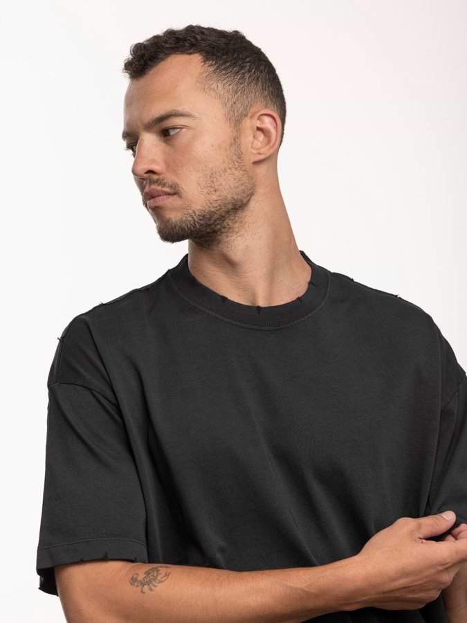 PALM MYKONOS black oversize t shirt חולצה אוברסייז בצבע שחור בייסיק עם קרעים (חלק מסט)