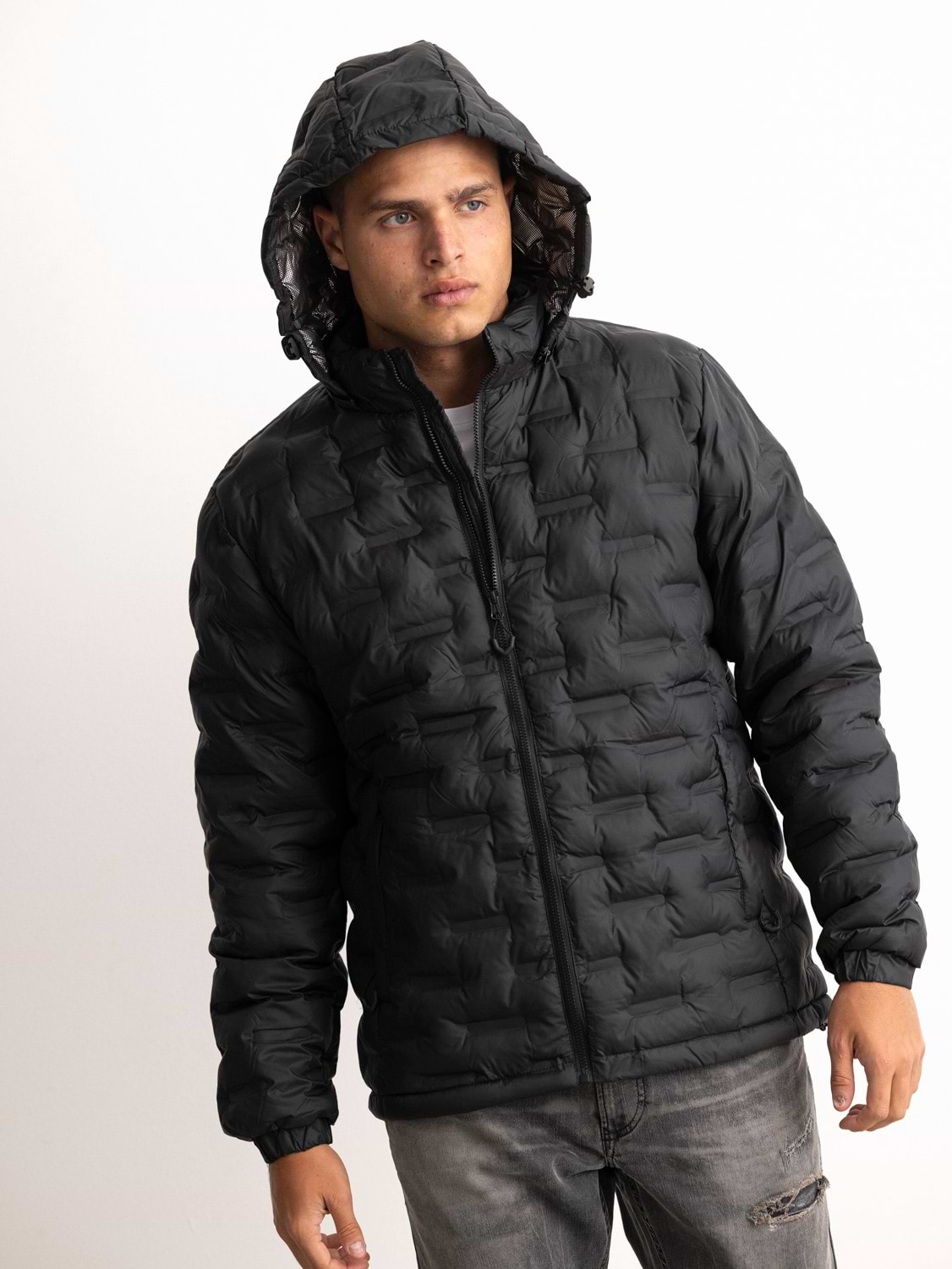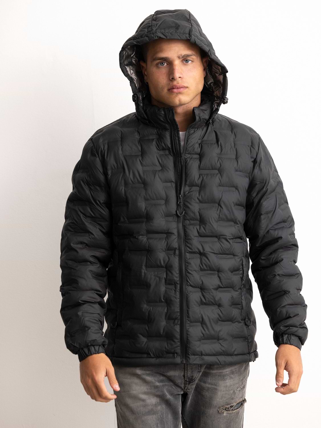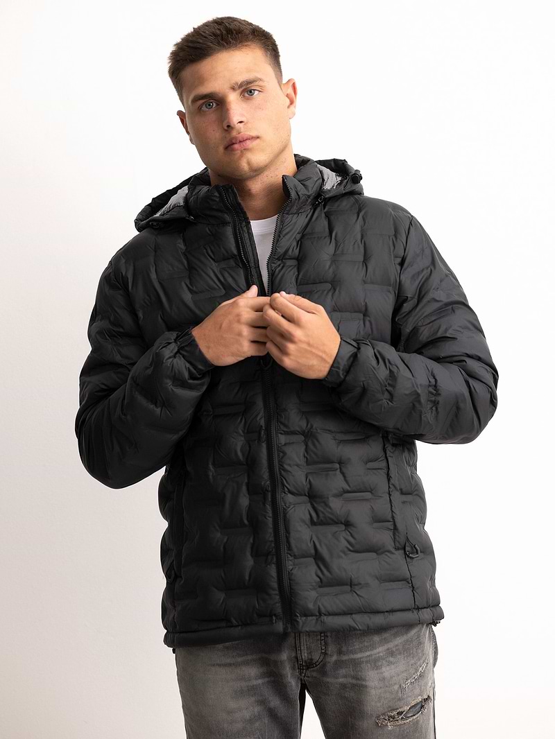 PALM MYKONOS coat black מעיל שחור מעוינים תרמי