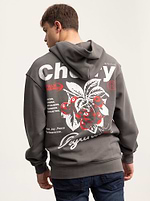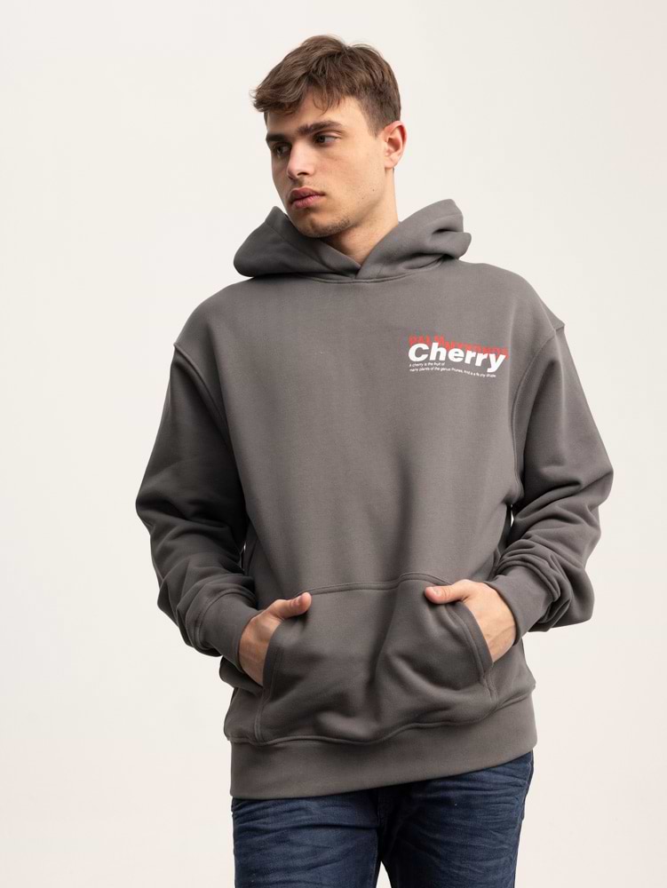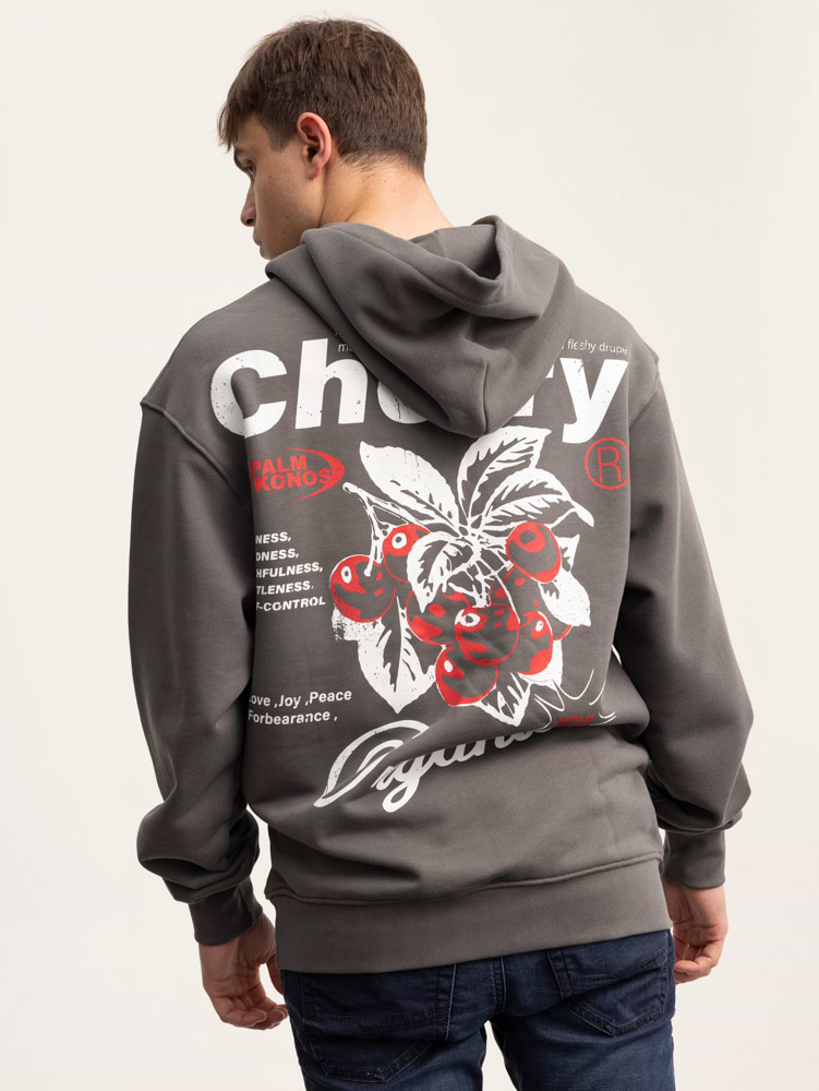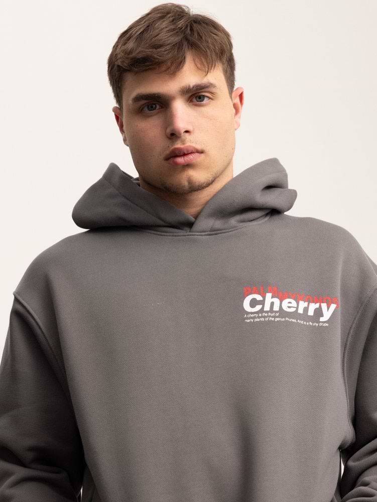 PALM MYKONOS gray oversize hoodie print cherry קפוצון אוברסייז בצבע אפור עם הדפס דובדבן אורגני