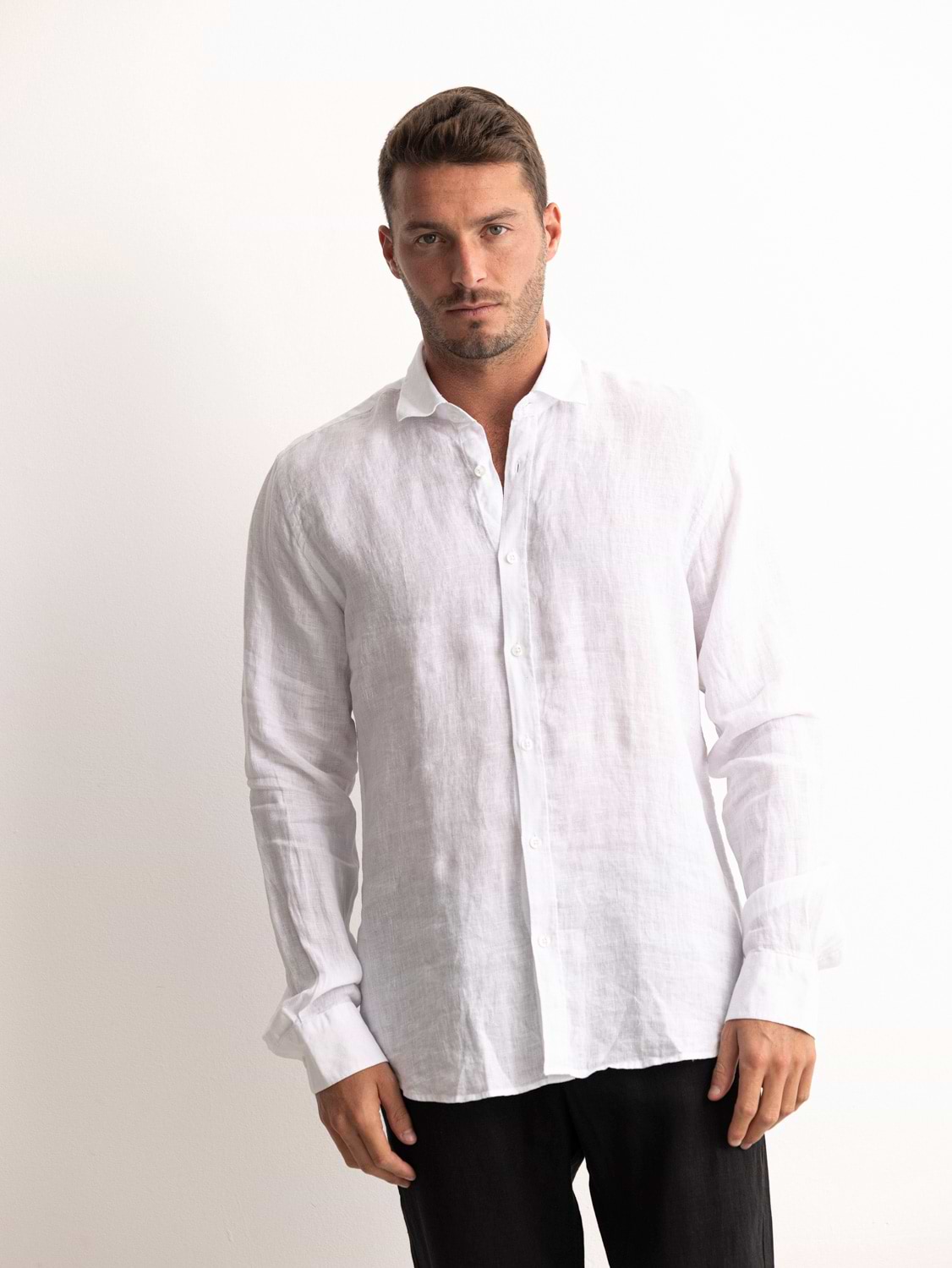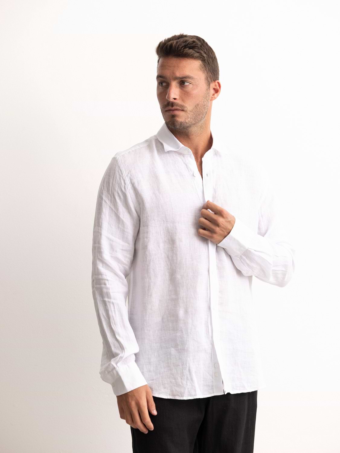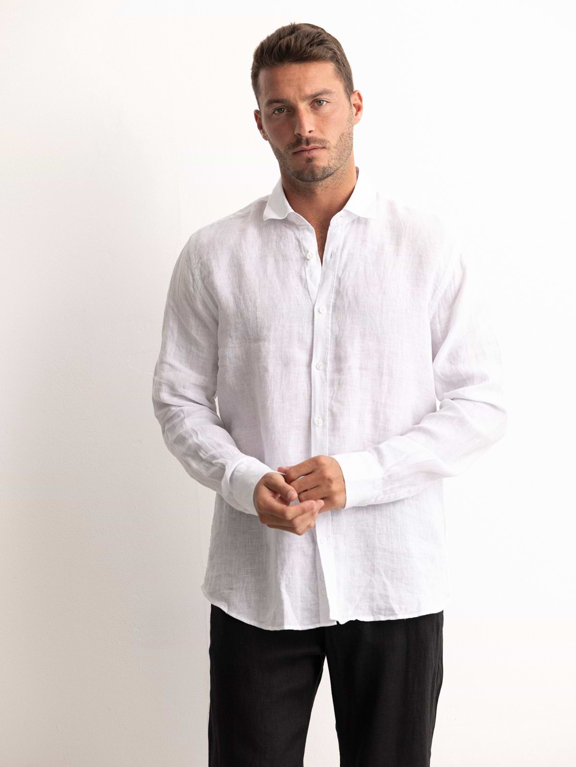 PALM MYKONOS linen shirt whiteמכופתרת פשתן צבע לבן