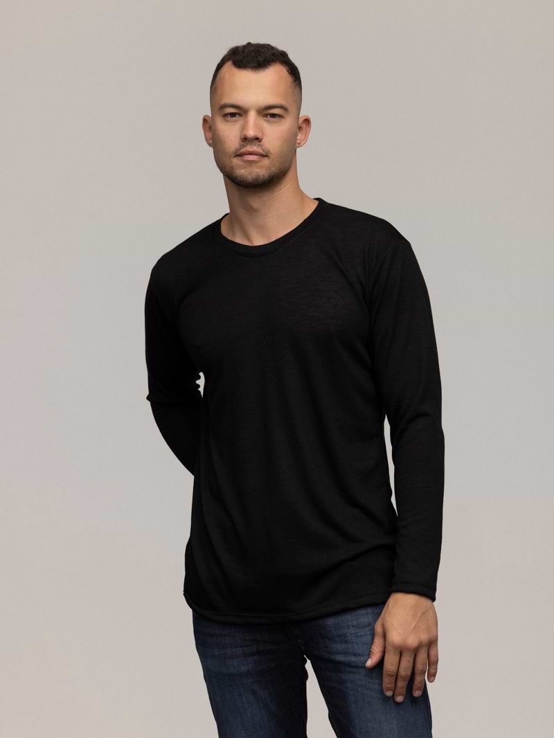 PALM MYKONOS linen t shirt long sleeve blackחולצת פשתן שרוול ארוך בצבע שחור