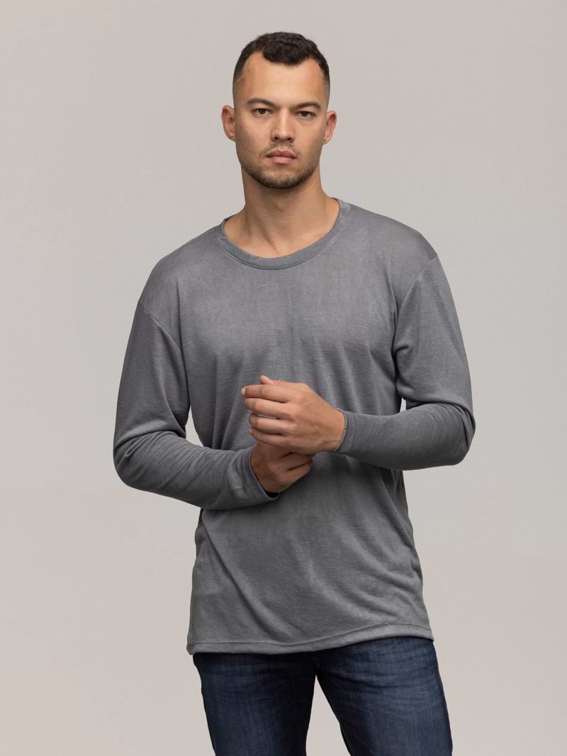 PALM MYKONOS linen t shirt long sleeve dark gray חולצת פשתן שרוול ארוך בצבע אפור כהה