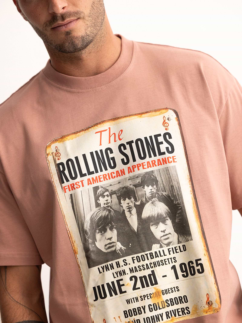 PALM MYKONOS oversize t shirt חולצה אוברסייז בצבע פודרה הדפס רולינג סטון