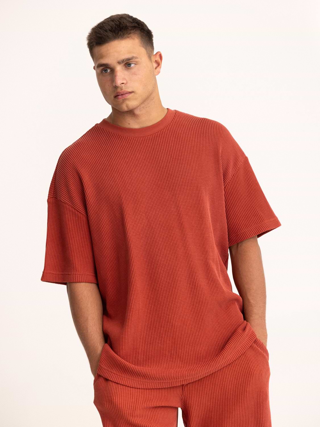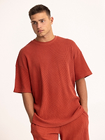 PALM MYKONOS smoke red waffle oversize t shirt חולצה אוברסייז בד וופל בצבע אדום מעושן (חלק מסט)