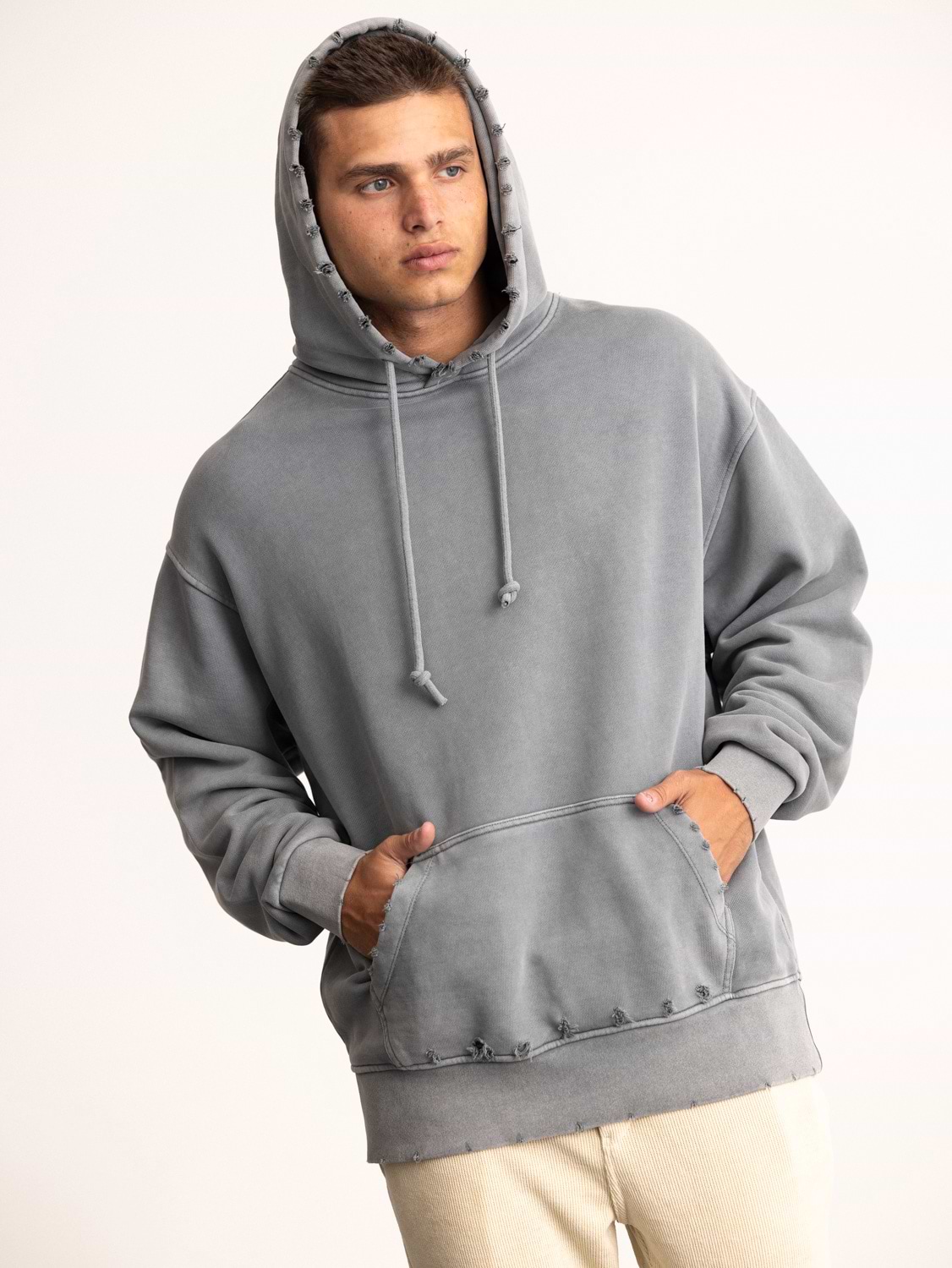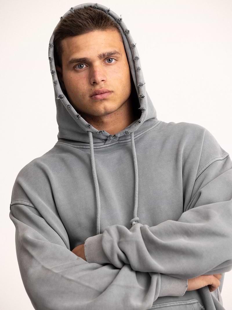 PALM MYKONOS super vintage gray oversize hoodie קפוצון אוברסייז בצבע אפור קרעים