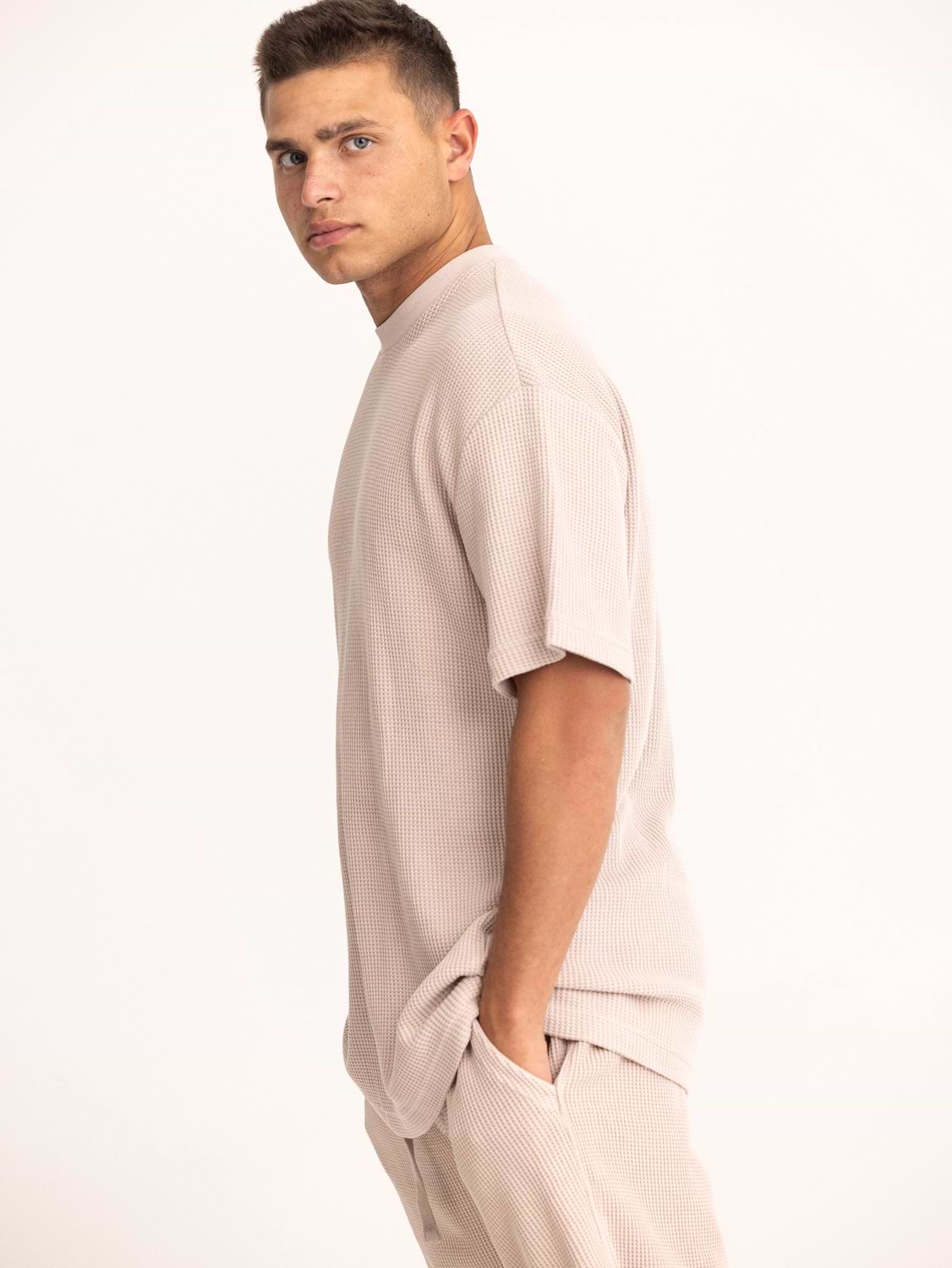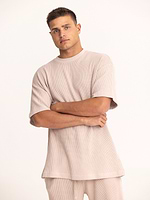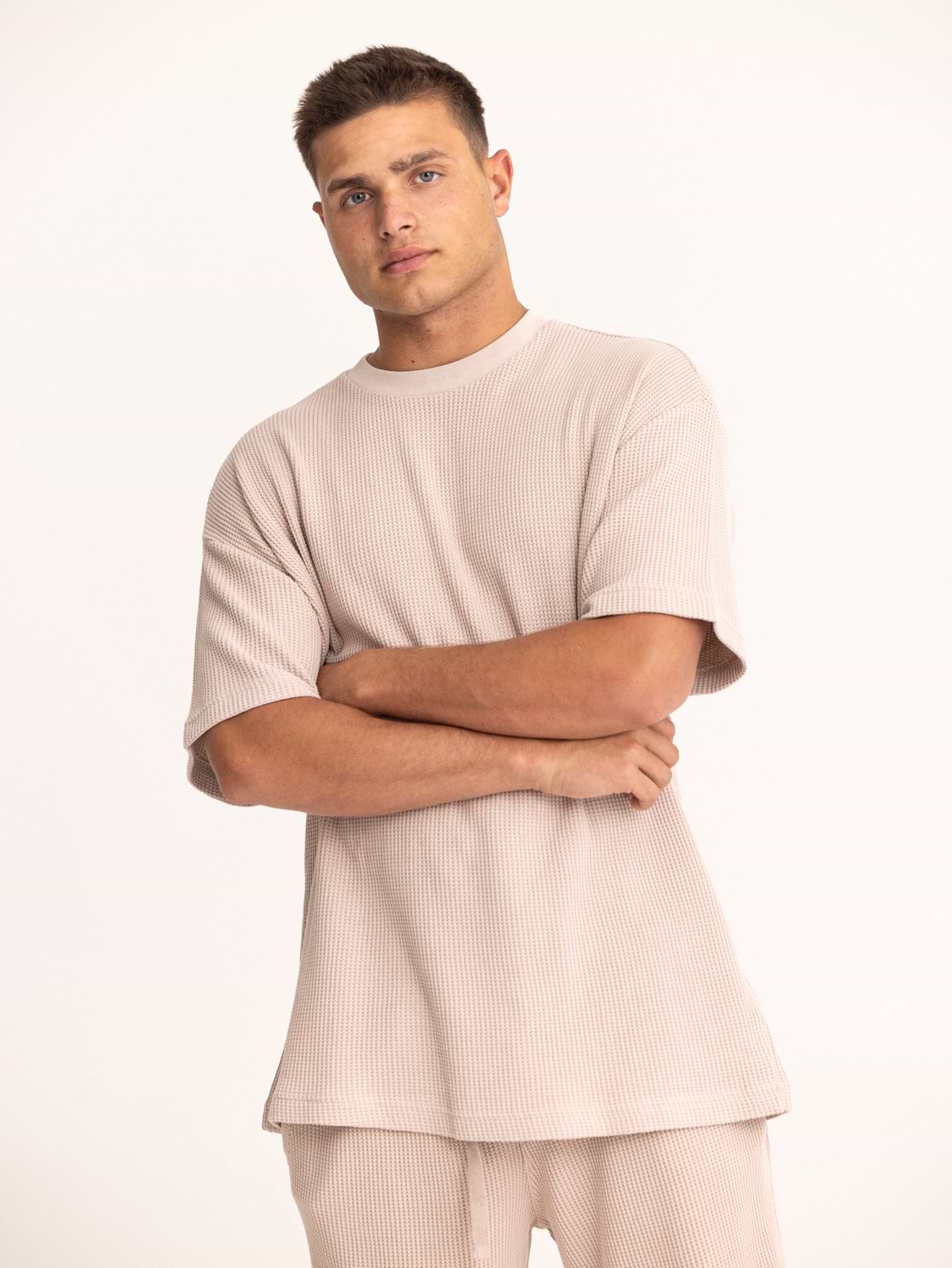 PALM MYKONOS waffle oversize t shirt חולצה אוברסייז בד וופל בצבע פודרה (חלק מסט)