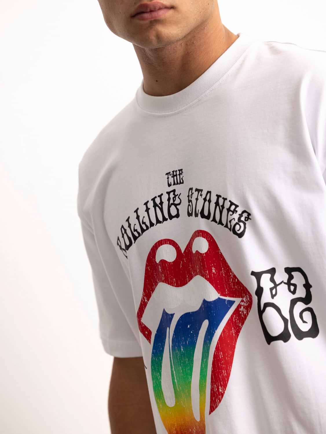 PALM MYKONOS white oversize t shirt חולצה אוברסייז בצבע לבן הדפס רולינג סטון