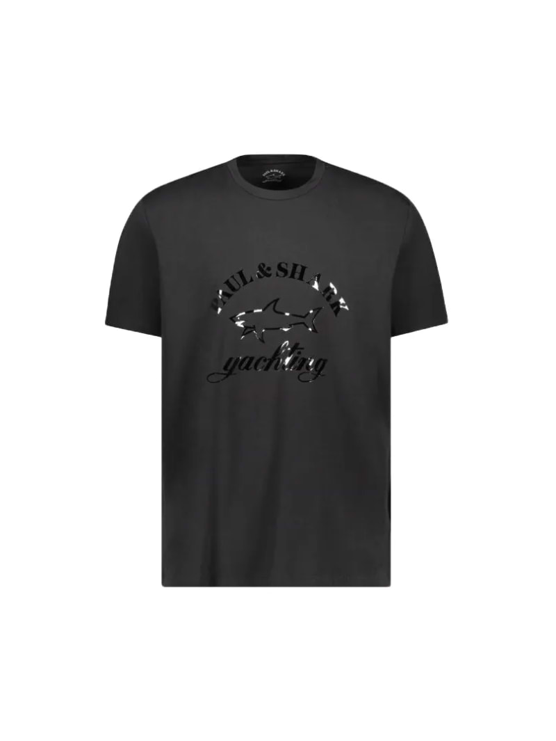 paul and shark big logo חולצה שחורה לוגו שחור מבריק
