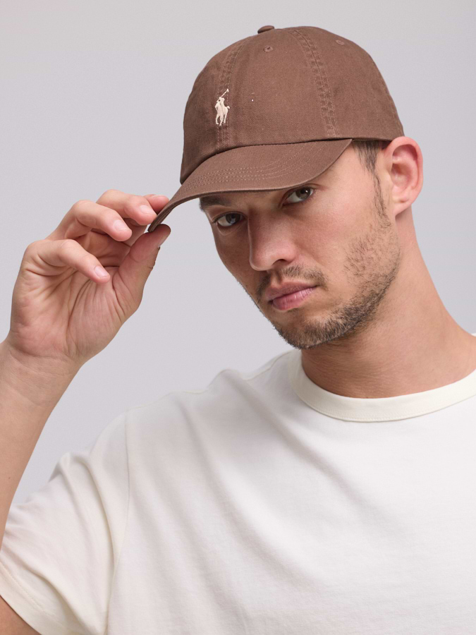 RALPH LAUREN Cotton Chino Ball Cap  כובע בצבע חום עם סוס בז