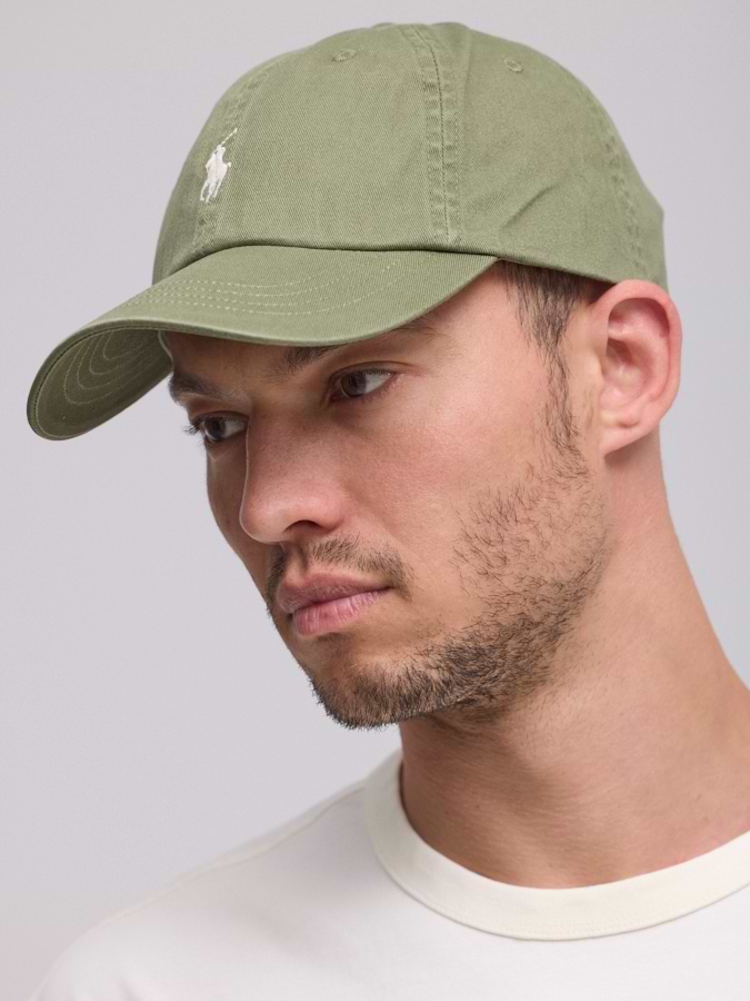 RALPH LAUREN Cotton Chino Ball Cap  כובע בצבע ירוק עם סוס לבן
