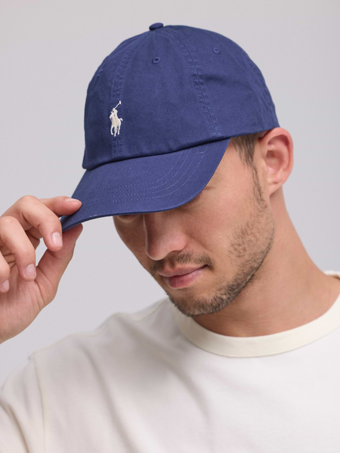 RALPH LAUREN Cotton Chino Ball Cap  כובע בצבע כחול עם סוס לבן