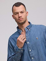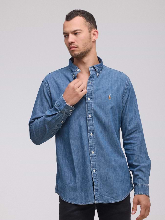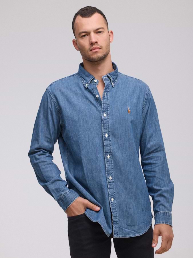 RALPH LAUREN shirt dark jeans logo מכופתרת בגוון ג’ינס כהה סוס צבעוני