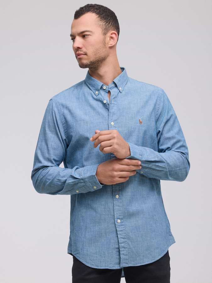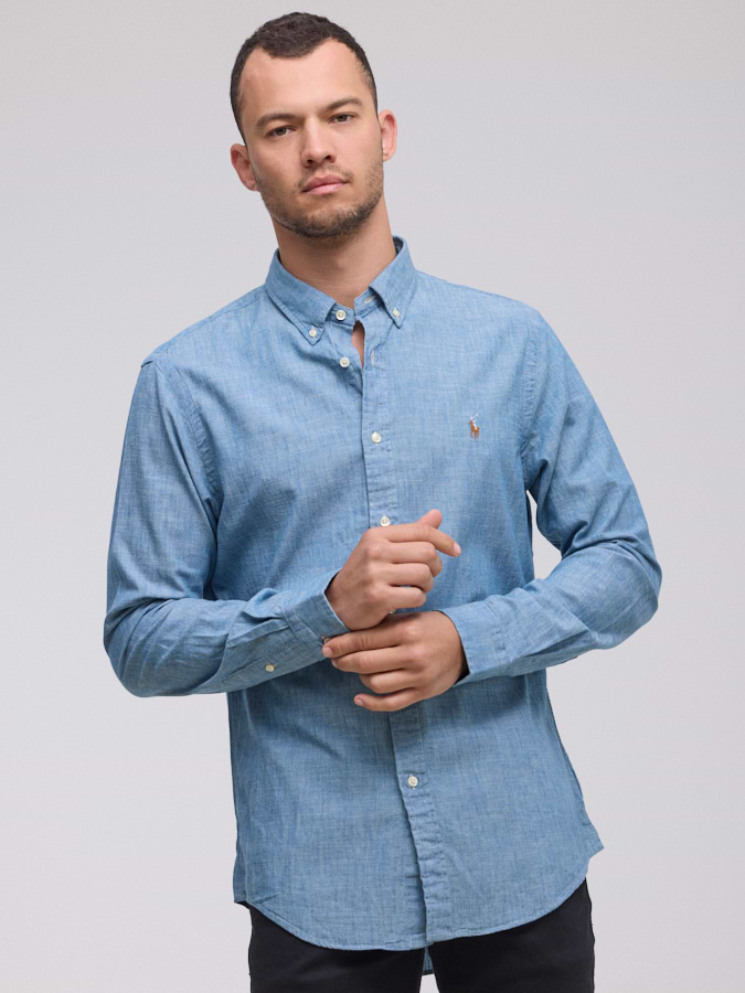 RALPH LAUREN shirt light jeans logo מכופתרת בגוון ג’ינס בהיר סוס צבעוני