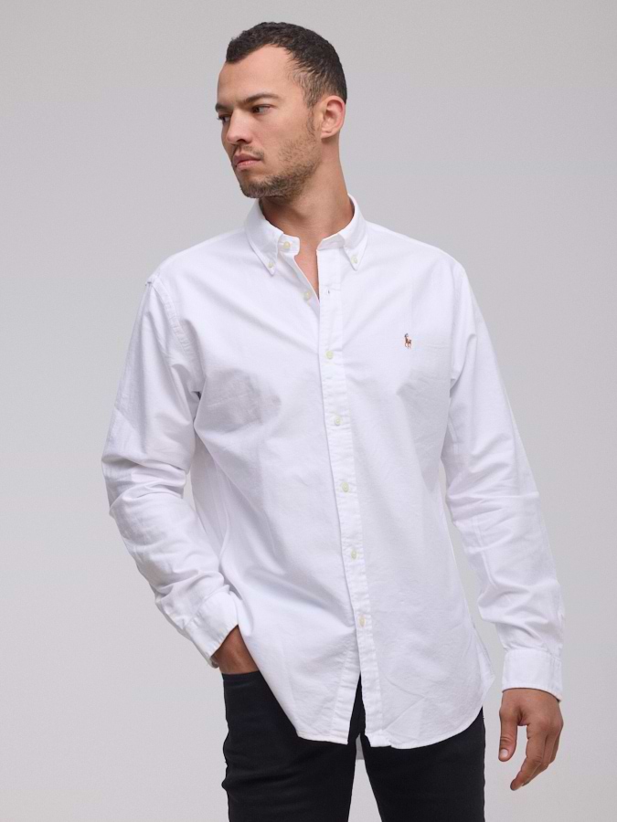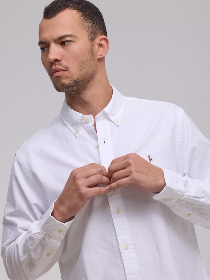RALPH LAUREN shirt white logo מכופתרת בד עבה סוס צבעוני