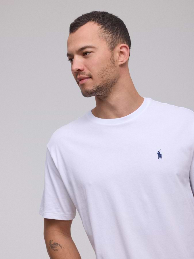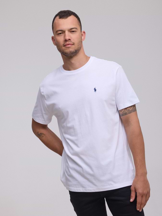 RALPH LAUREN t hisrwhite small logo navy טי שירט בצבע לבן סוס נייבי