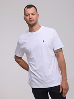 RALPH LAUREN t hisrwhite small logo navy  טי שירט בצבע לבן סוס נייבי