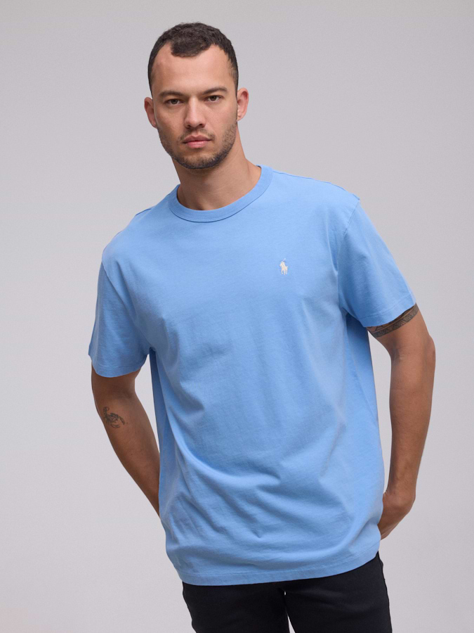 RALPH LAURENt shirt blue small logo white טי שירט בד עבה בצבע תכלת סוס לבן CLASSIC FIT