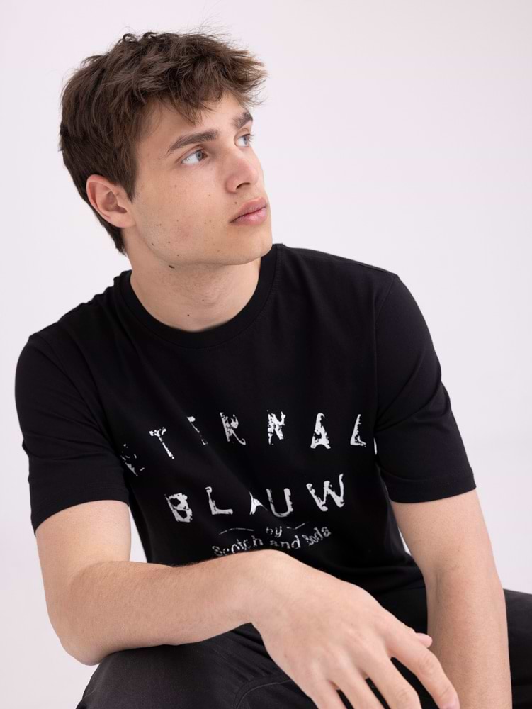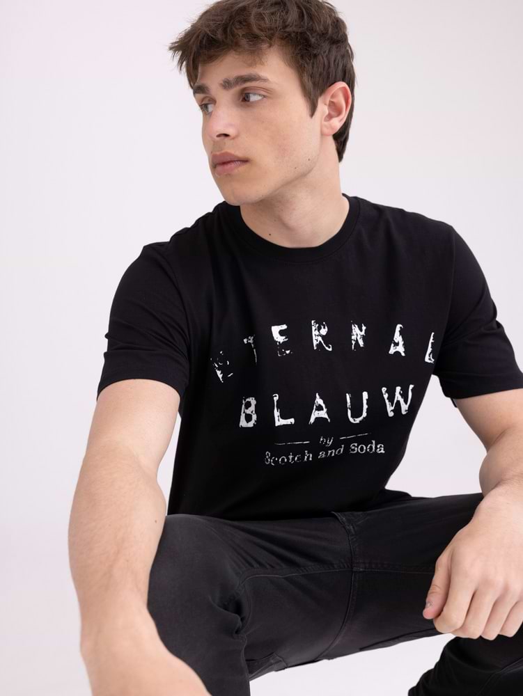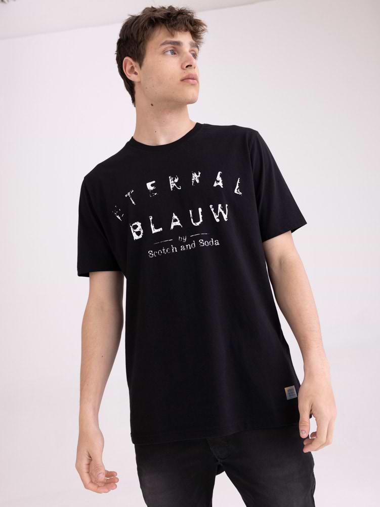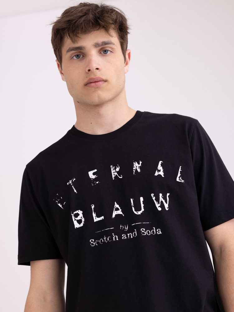 SCOTCH AND SODA black logo חולצה בצבע שחור הדפס blauw