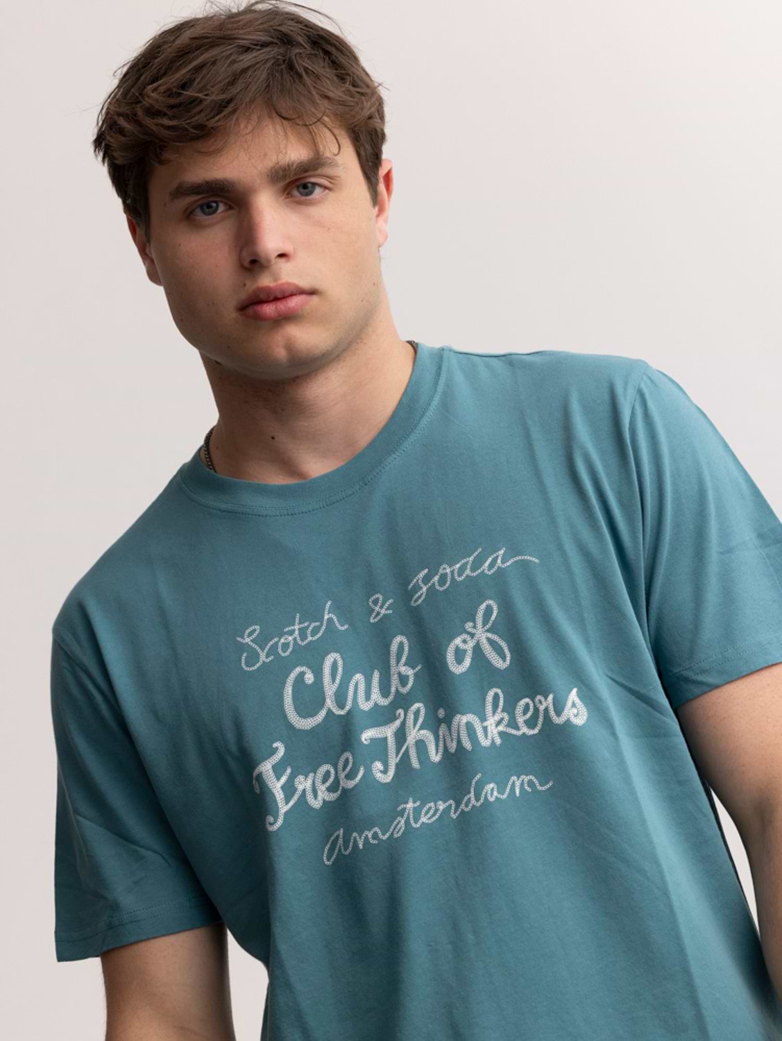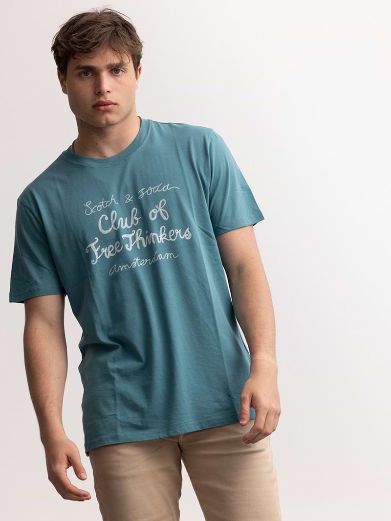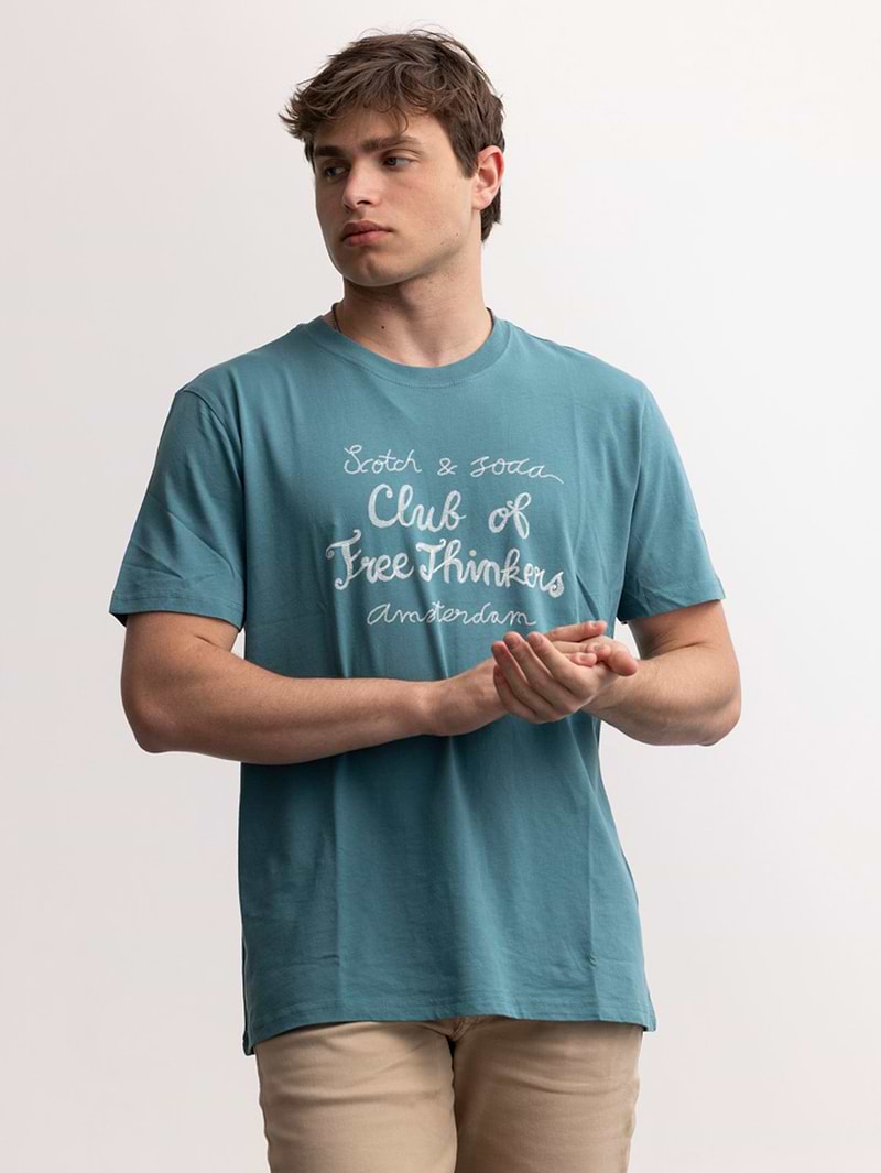 SCOTCH AND SODA blue big logo חולצה בצבע כחול פטרול לוגו מחובר בחזית המוצר בחזית