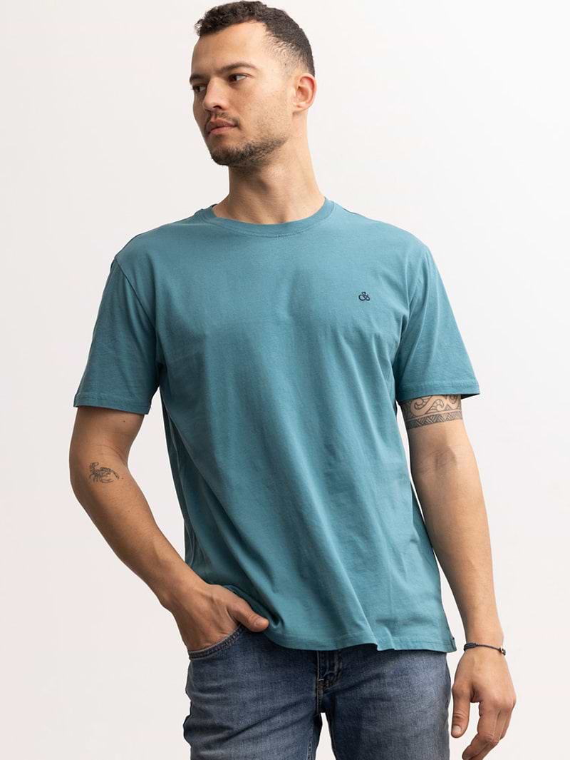 SCOTCH AND SODA blue logo חולצה בצבע כחול פטרול לוגו קטן בצד