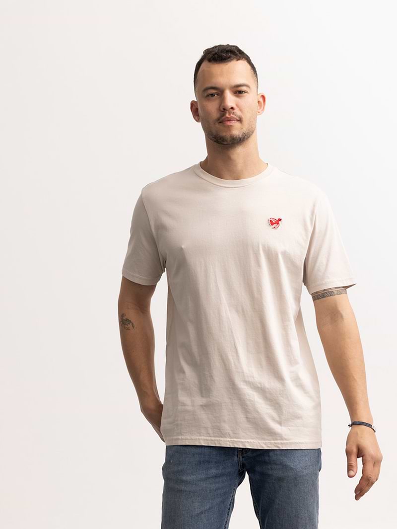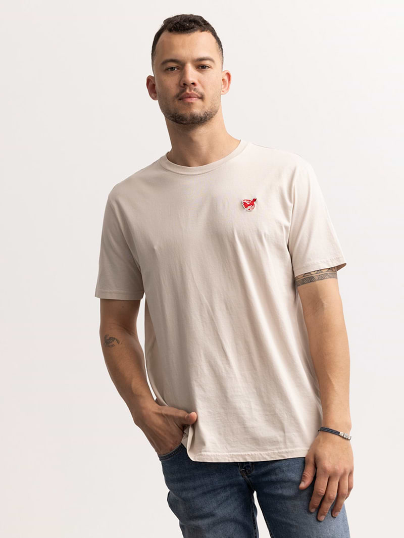 SCOTCH AND SODA light stone bird logo חולצה בצבע אבן בהיר לוגו ציפור קטן בצד