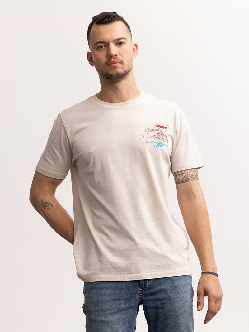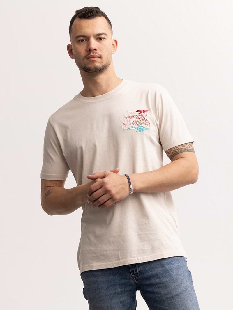 SCOTCH AND SODA light stone bird logo חולצה בצבע אבן בהיר רקמת ציפור תכלת