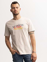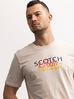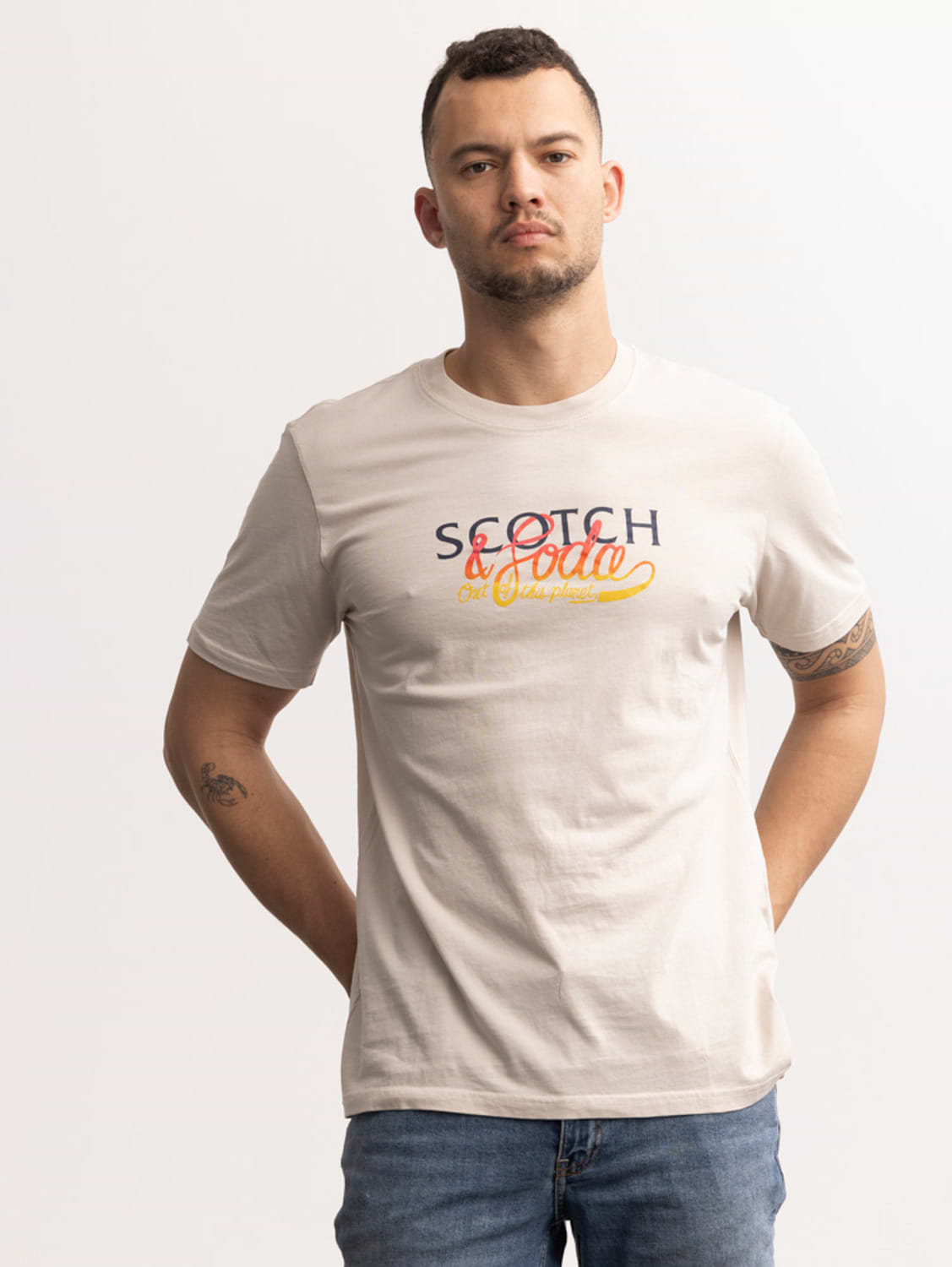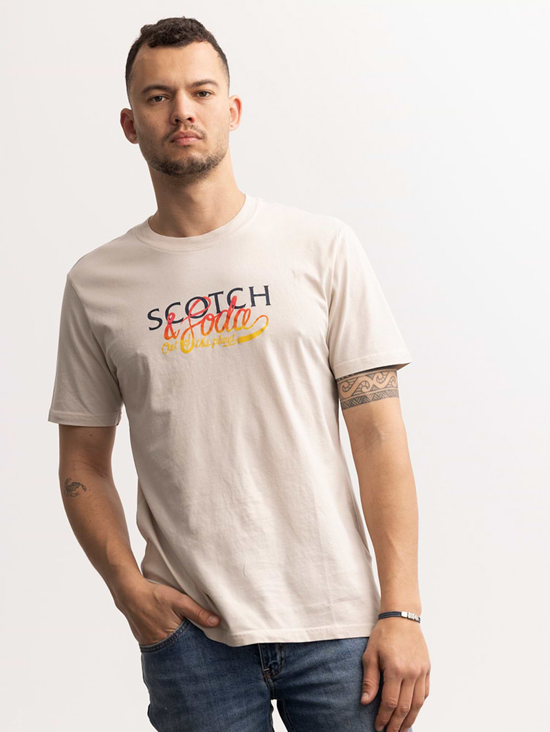 SCOTCH AND SODA light stone brand planet logo חולצה בצבע אבן בהיר הדפס המותג בחזית פלאנט