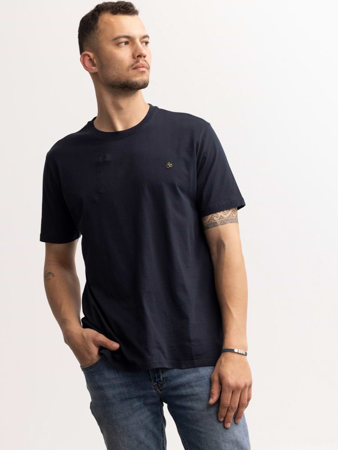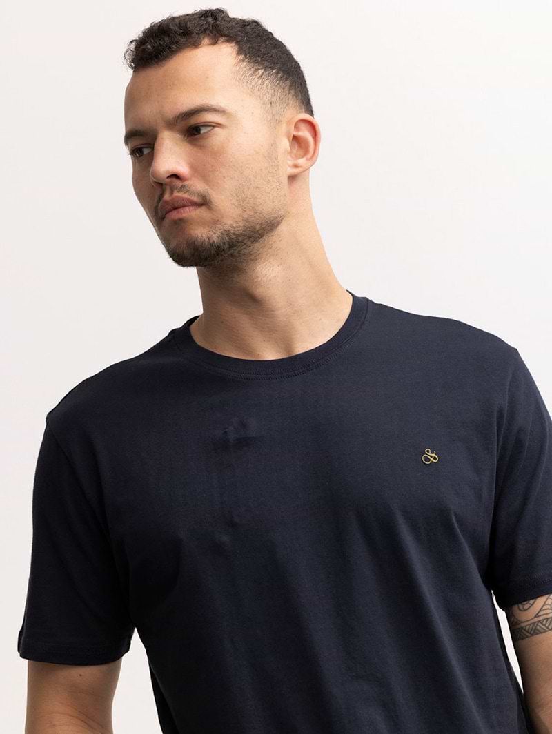SCOTCH AND SODA navy logo חולצה בצבע נייבי לוגו קטן בצד