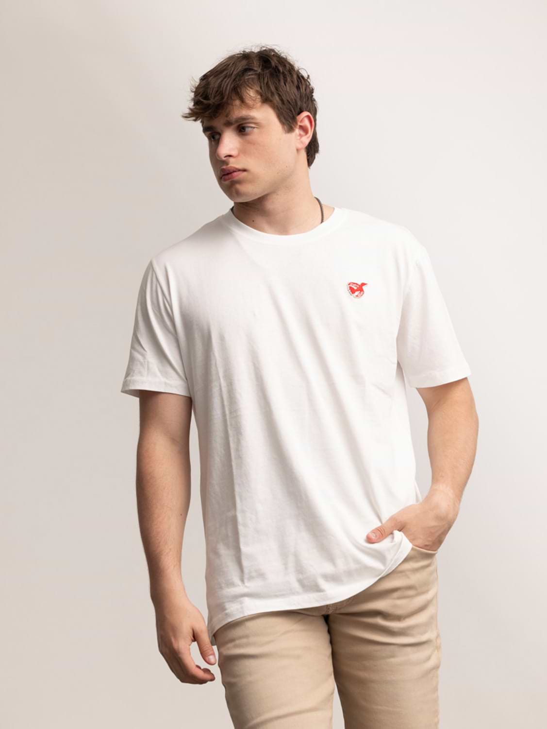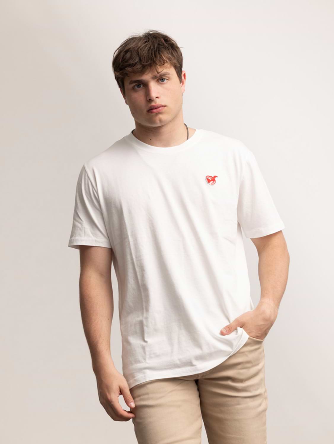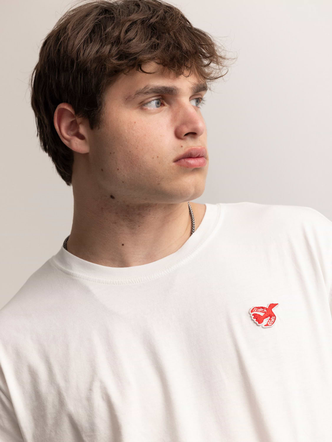 SCOTCH AND SODA white bird logo חולצה בצבע לבן לוגו ציפור קטן בצד
