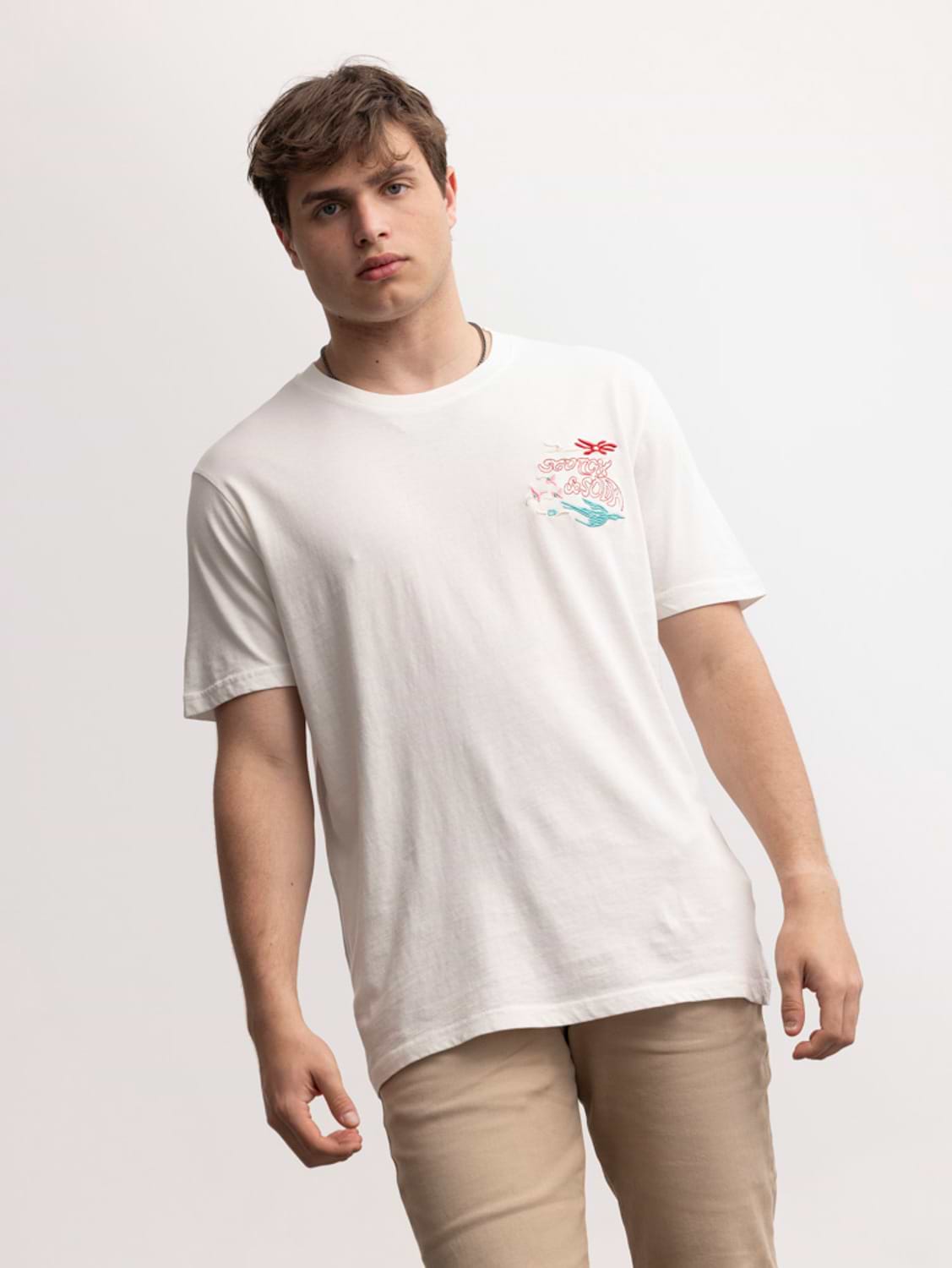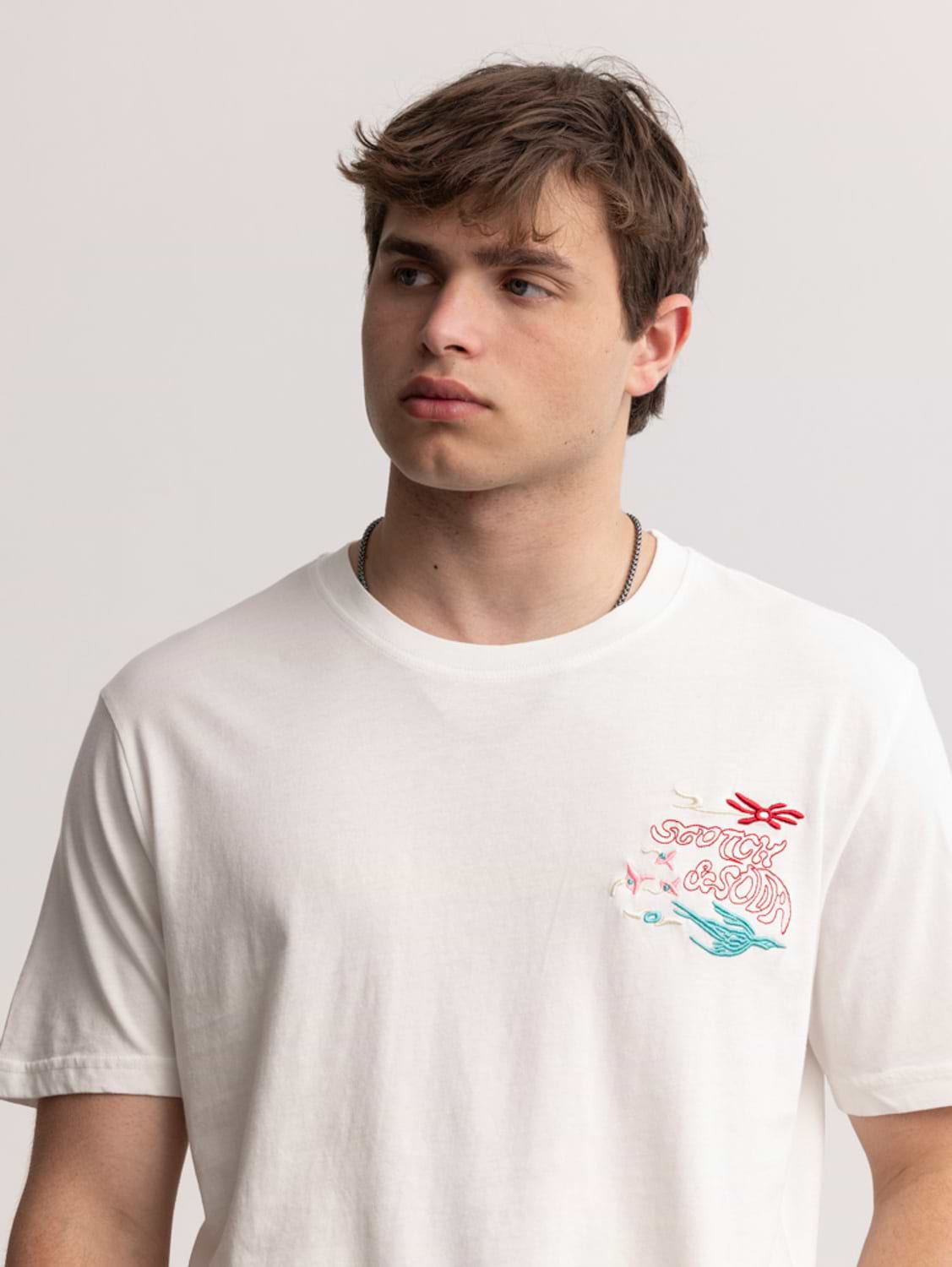 SCOTCH AND SODA white bird logo חולצה בצבע לבן רקמת ציפור תכלת