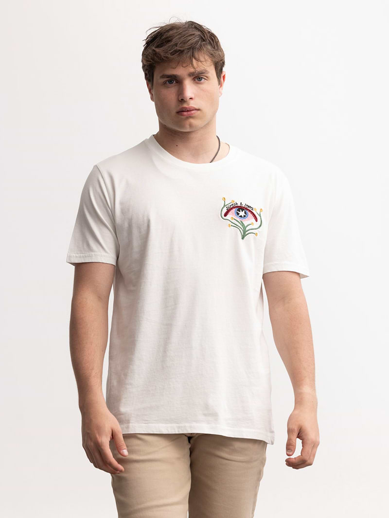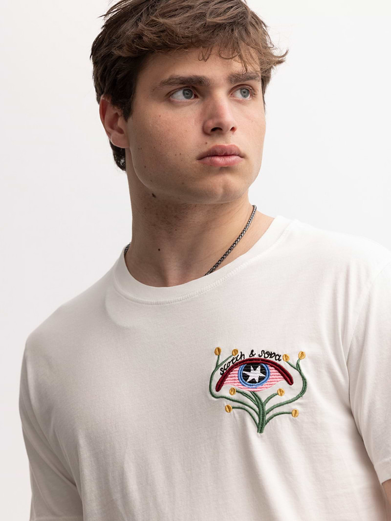 SCOTCH AND SODA white eye logo חולצה בצבע לבן לוגו רקמה בצורת עין