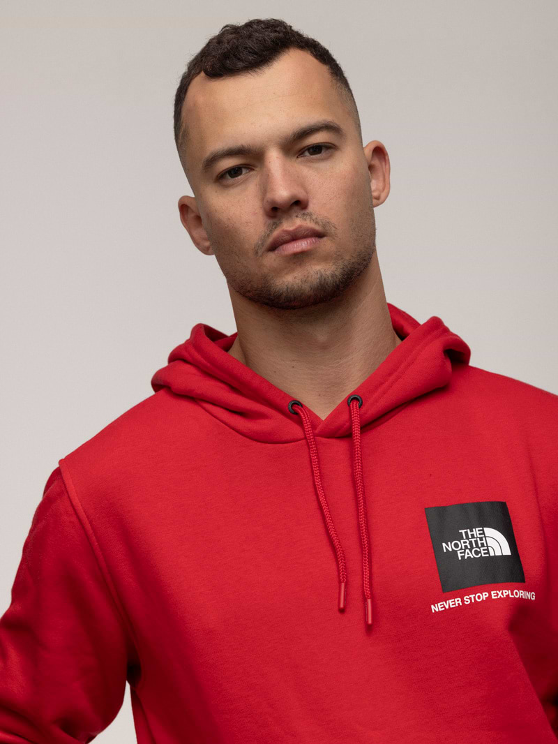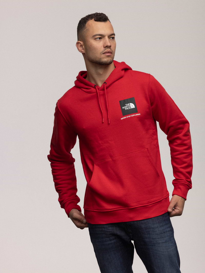 THE NORTH FACE hoodie red small logo קפוצון בצבע אדום לוגו ריבוע