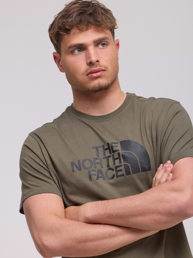 THE NORTH FACE logo t shirt חולצה בצבע ירוק זית עם לוגו גדול שחור בחזית המוצר